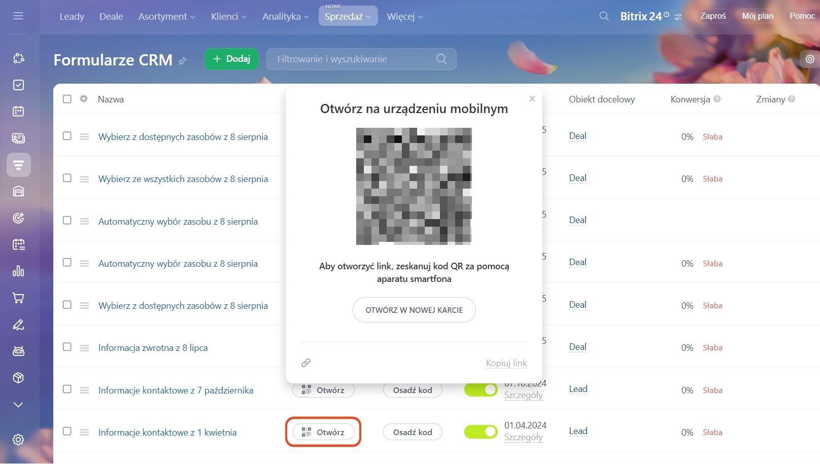 - Osadź formularz CRM w witrynie, która nie została utworzona w Bitrix24