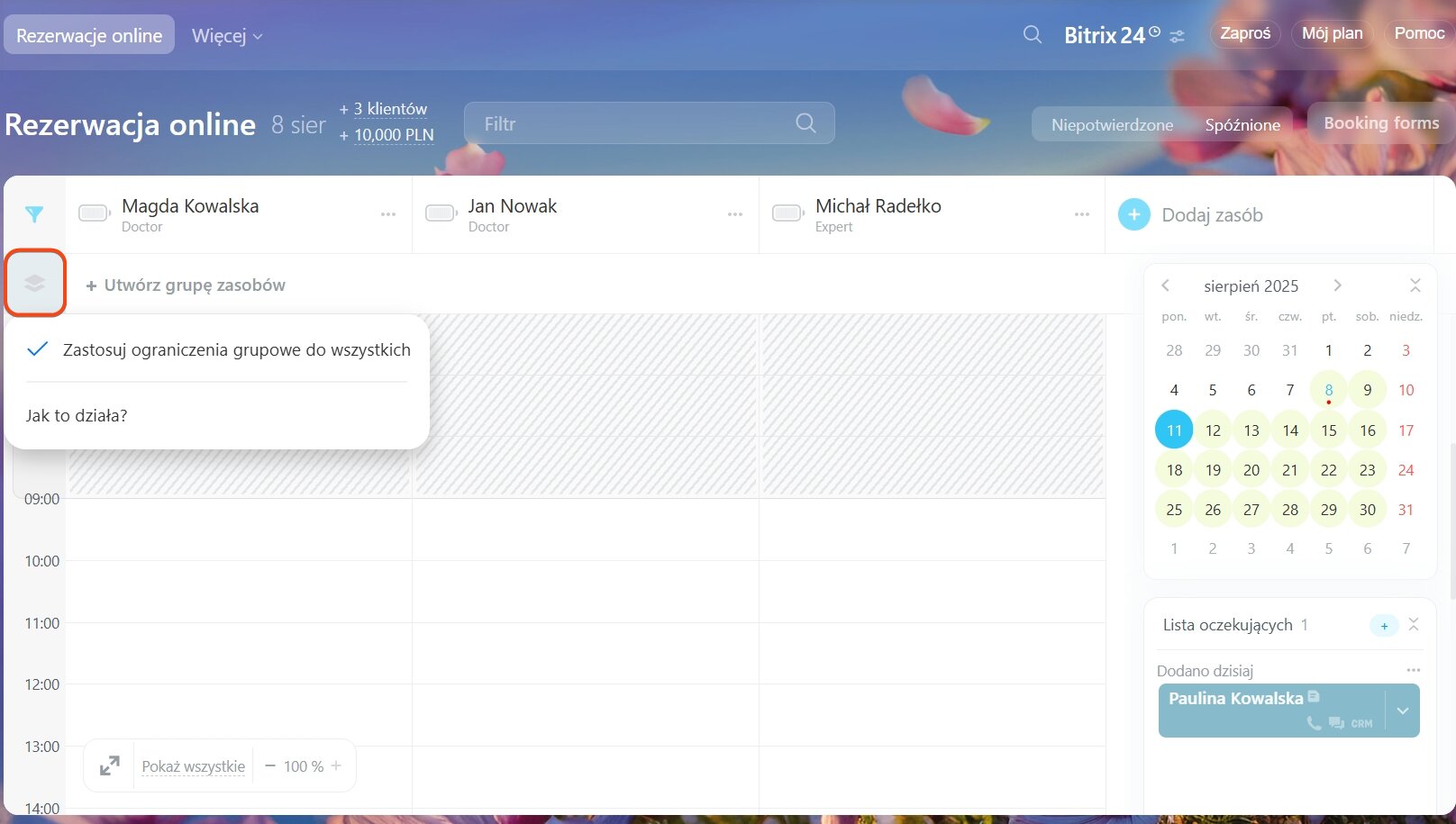 Jeśli Twój biznes na to pozwala, pracownik może dodać klienta do już zarezerwowanego terminu. W przypadku anulowania lub zmiany terminu przez jednego z klientów slot zostanie przypisany innemu.