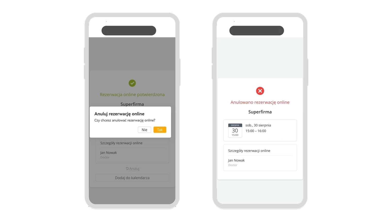 Jeśli klient nie potwierdzi rezerwacji, termin zostanie automatycznie udostępniony dla innej rezerwacji.