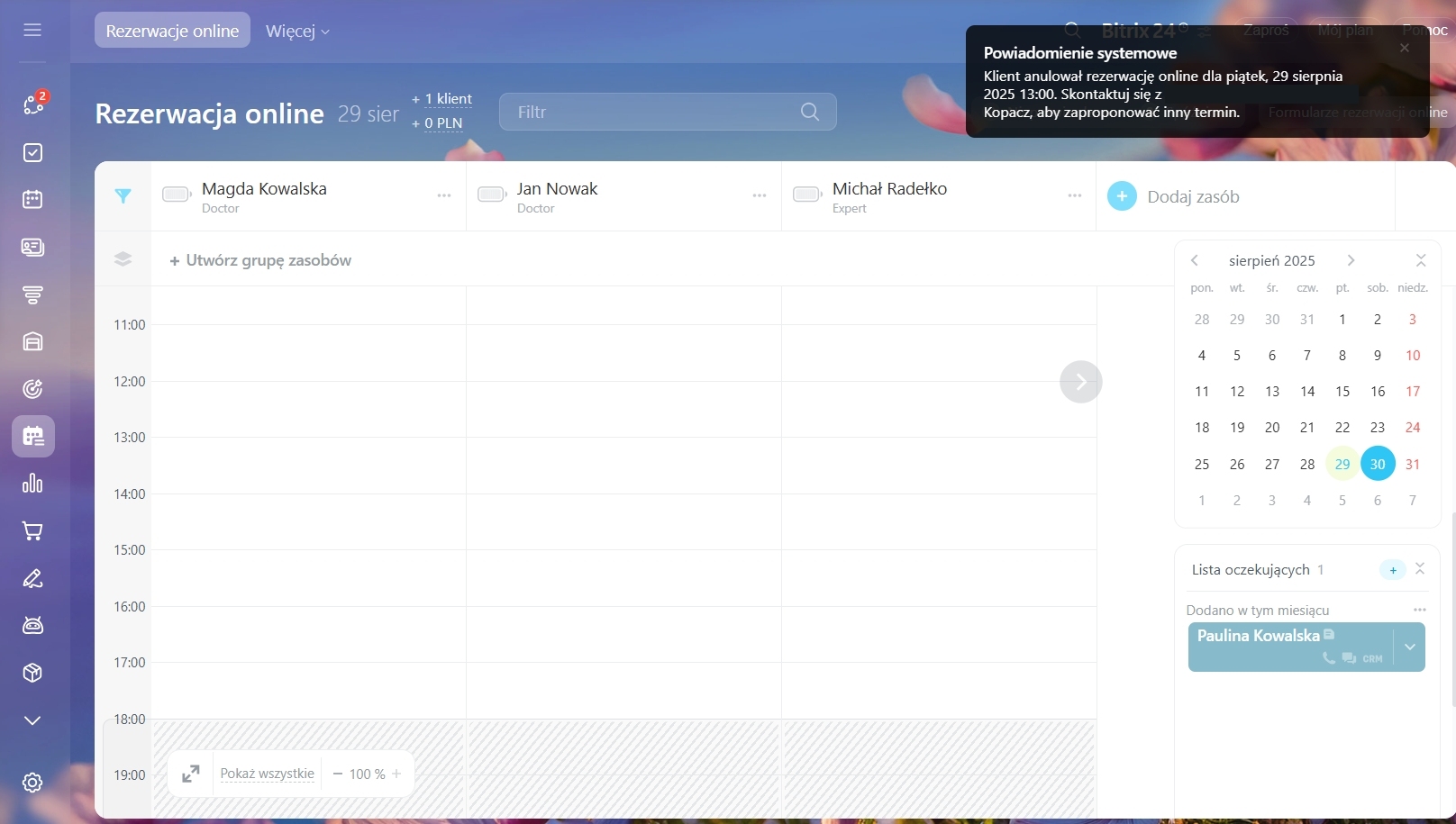 Jeśli klient anuluje, pracownik otrzymuje powiadomienie.