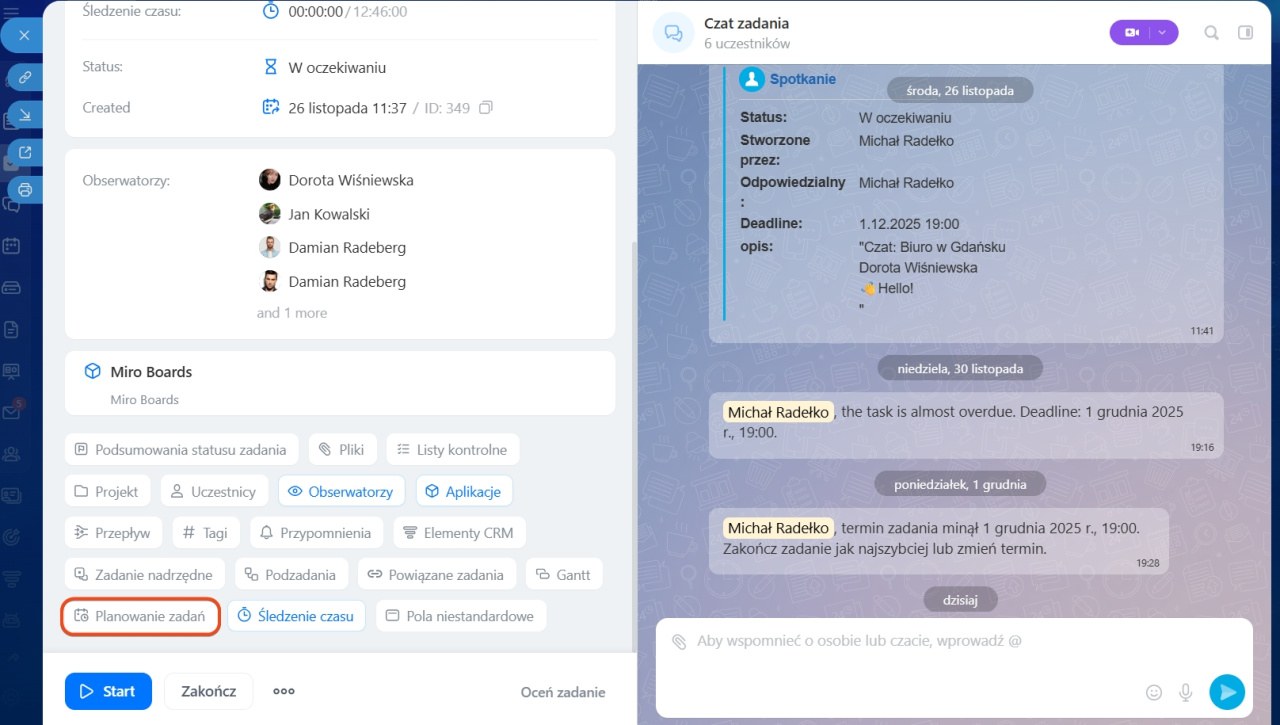 Jeśli nic nie zostanie określone, datą rozpoczęcia będzie data utworzenia zadania.