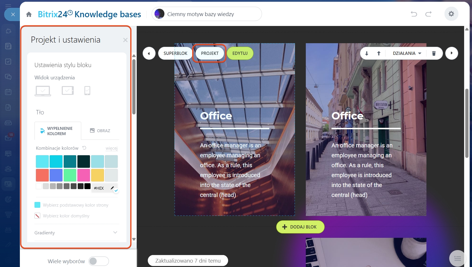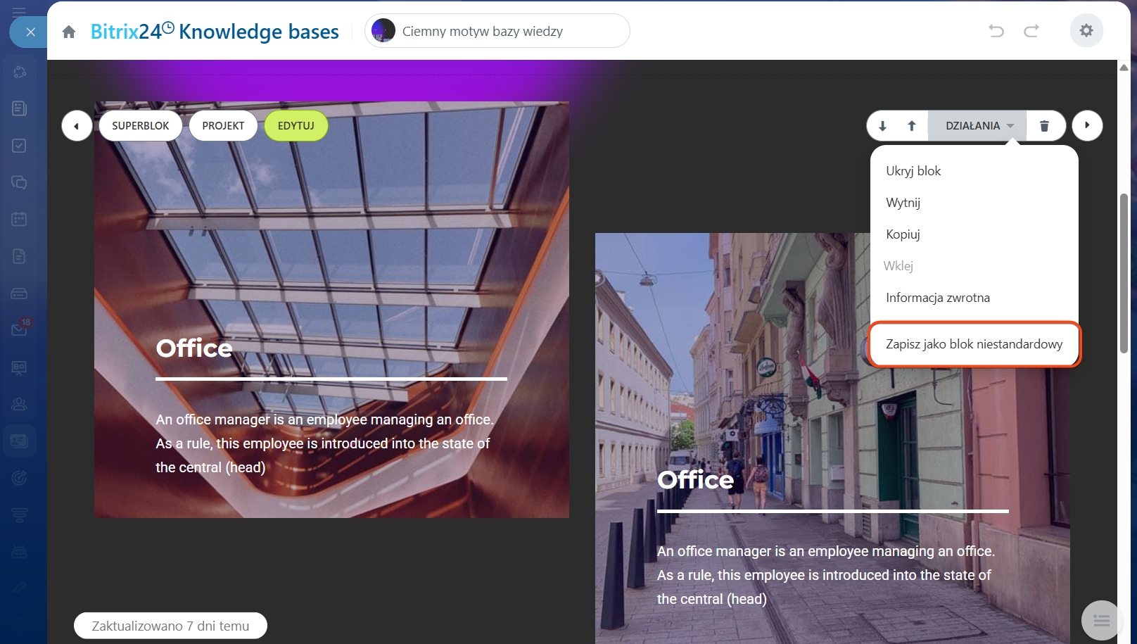 - Jak dodać bazę wiedzy do grupy roboczej/projektu