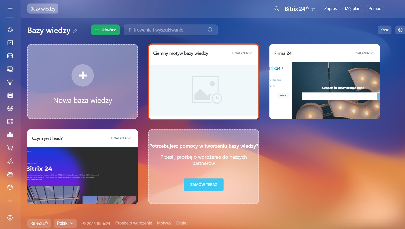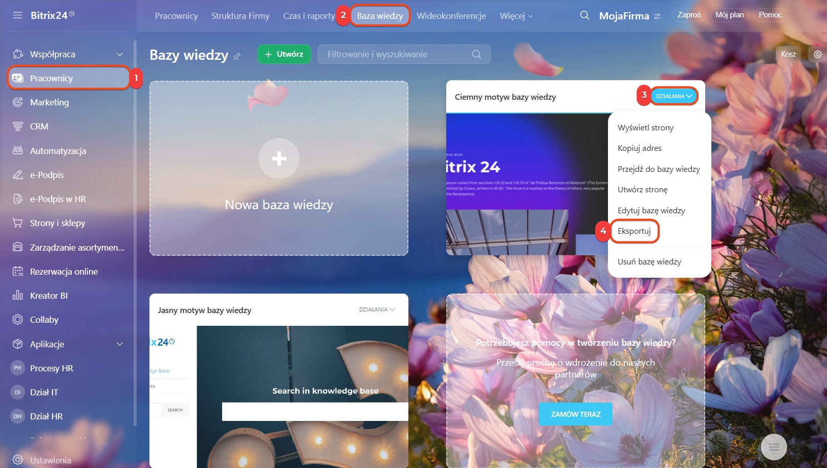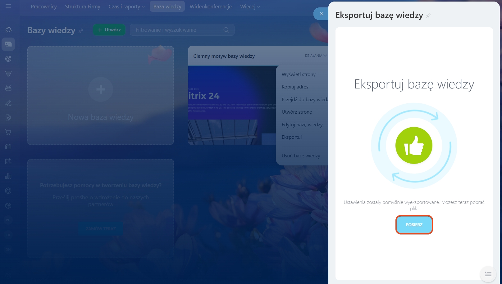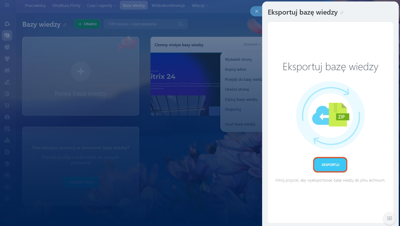 - Eksport baz wiedzy jest dostępny tylko w komercyjnych planach Bitrix24.