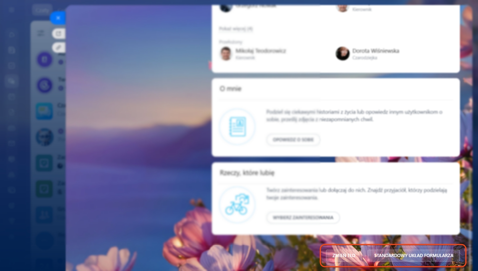 Zmień tło. Możesz wybrać dowolne tło dla swojego profilu. Współpracownicy zobaczą tło, gdy wejdą na Twój profil.