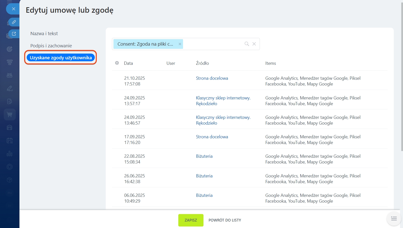 Zgoda użytkownika