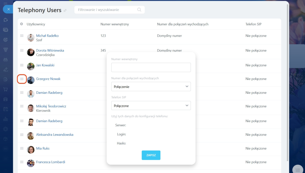 Podłącz urządzenia telefoniczne do swojego Bitrix24, aby dzwonić do klientów i odbierać połączenia przychodzące.