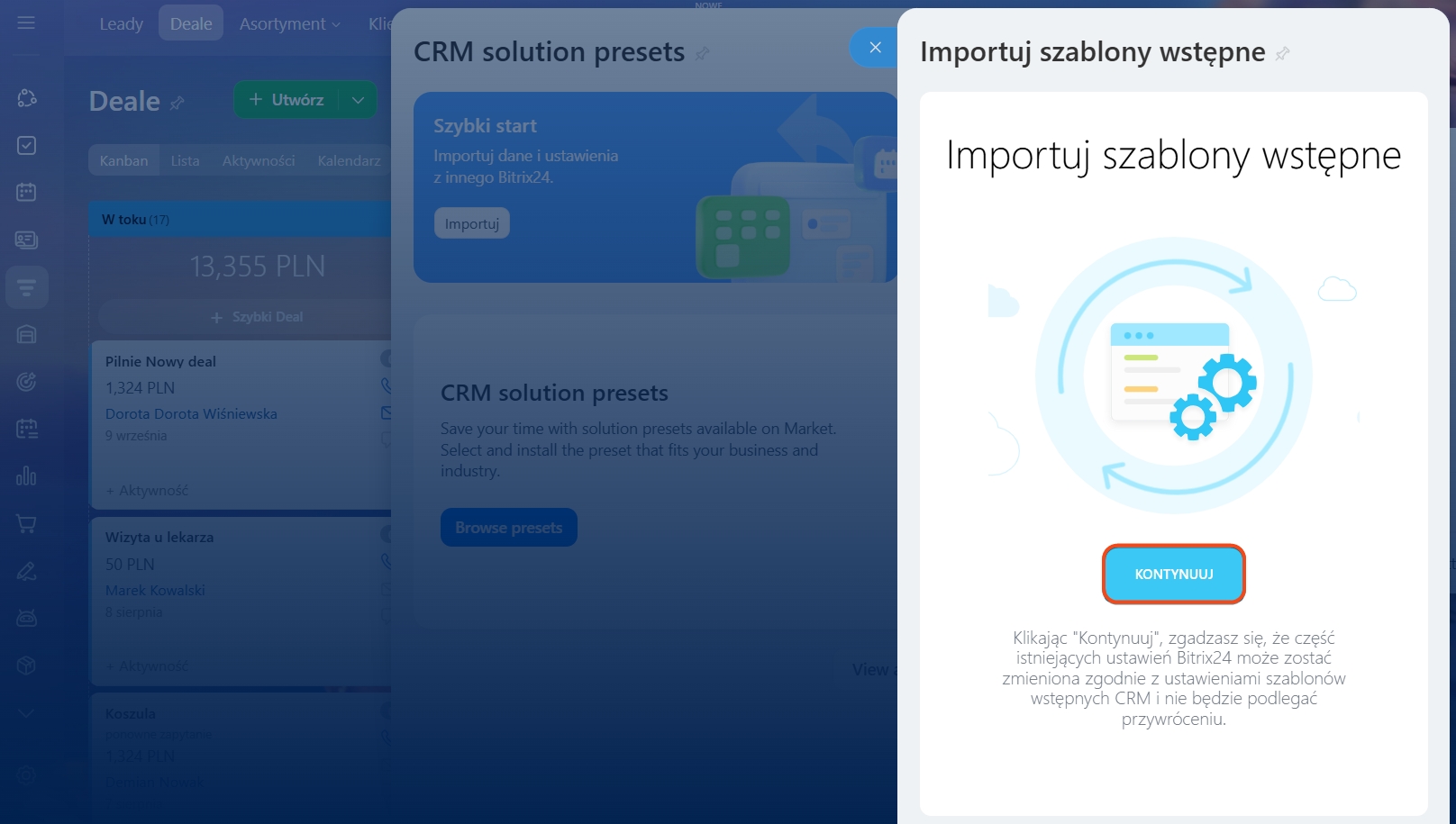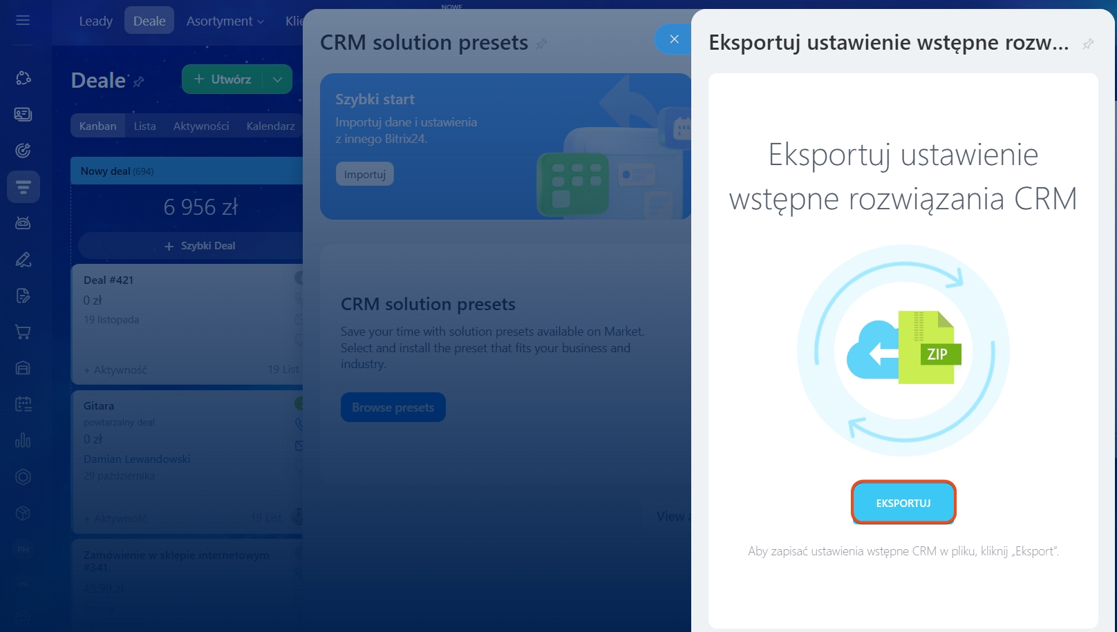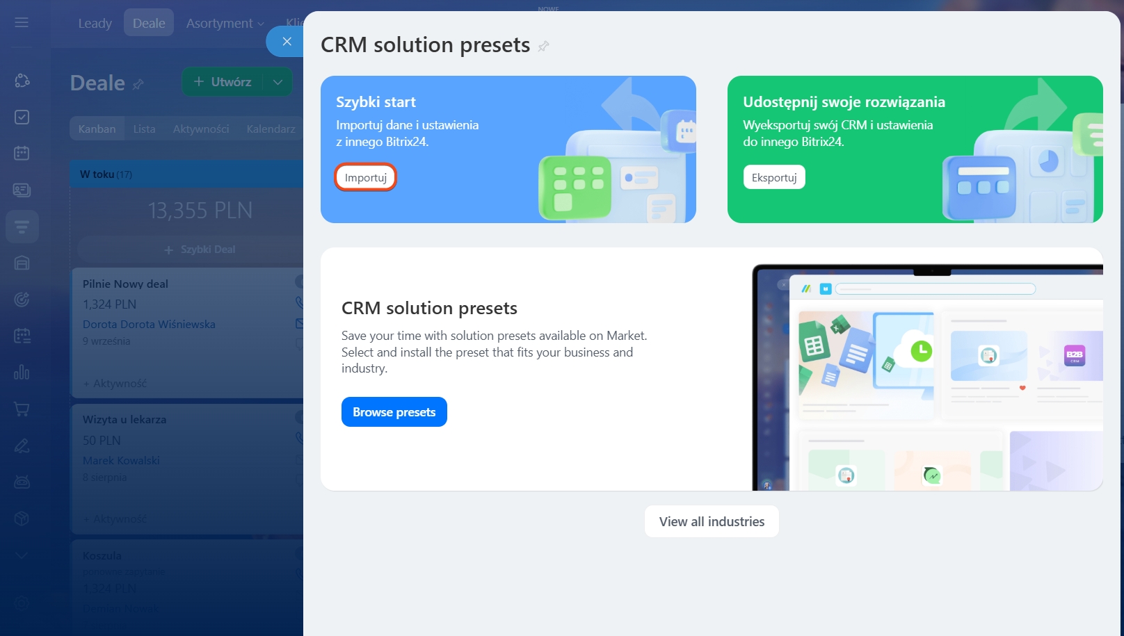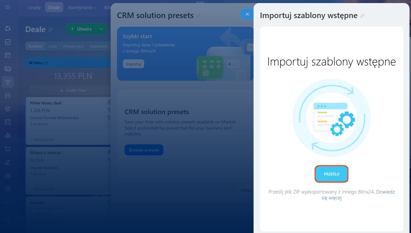 Możesz przenieść ustawienia CRM z jednego konta Bitrix24 na inne.
