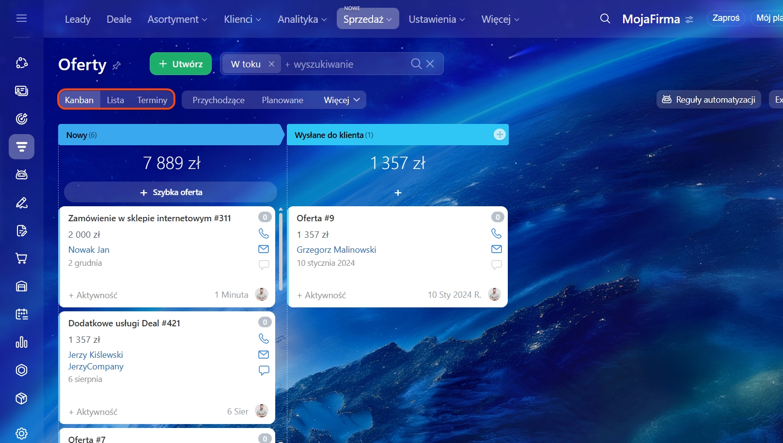 Oferty mają dwa widoki: Kanban i Lista.