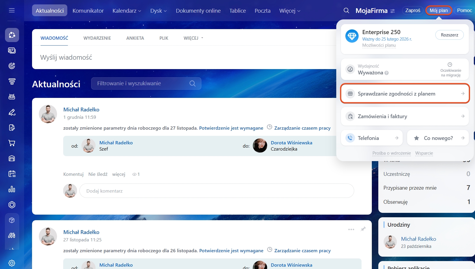 Funkcje wymagające uwagi właściciela Bitrix24: