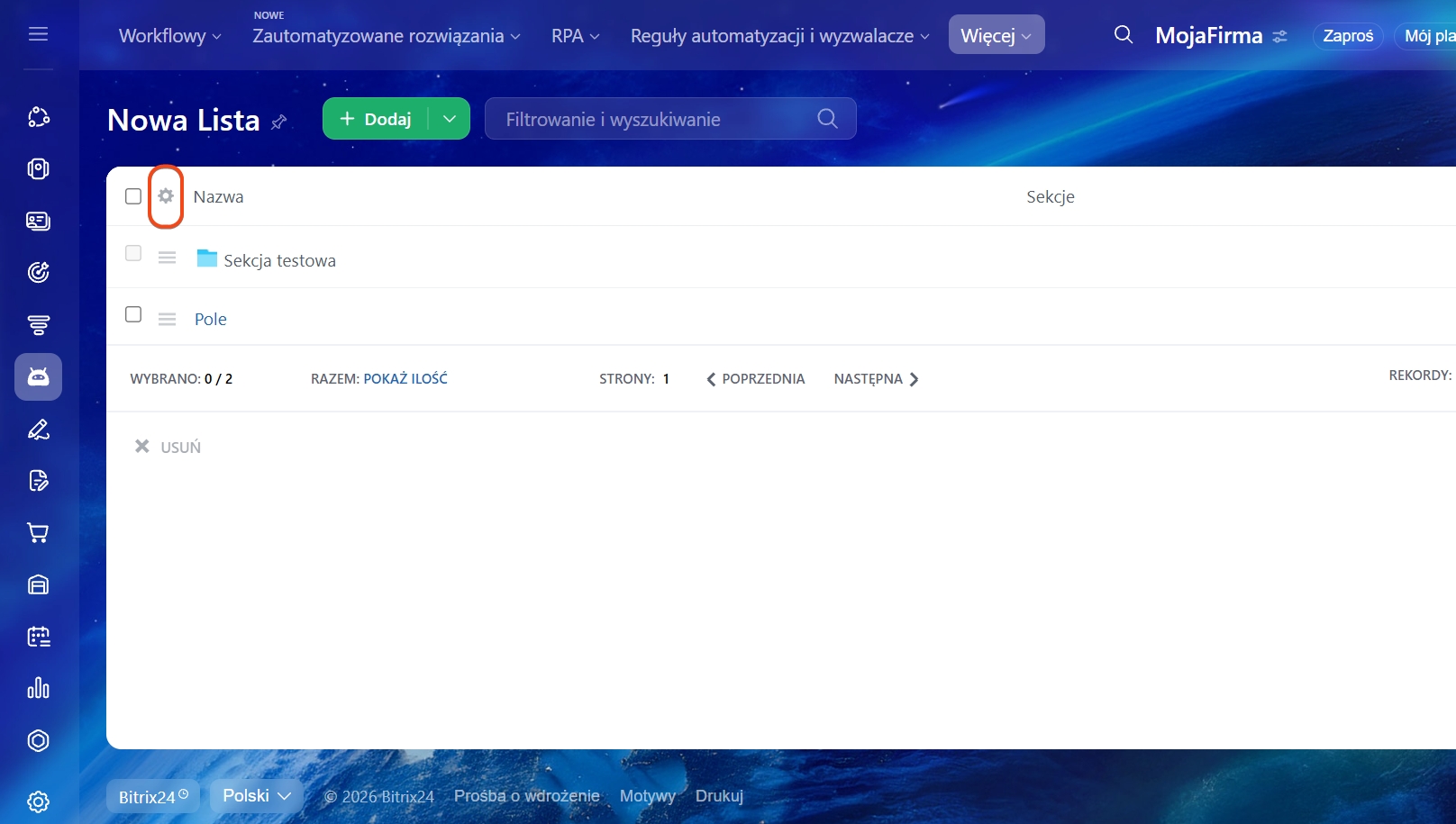 Kliknij Dodaj w prawym górnym rogu i wybierz Dodaj sekcję. Podaj nazwę sekcji i kliknij Dodaj.