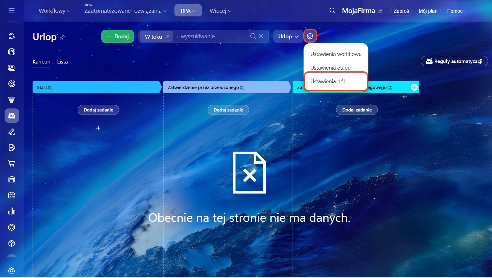 Jak utworzyć pola w kanbanie