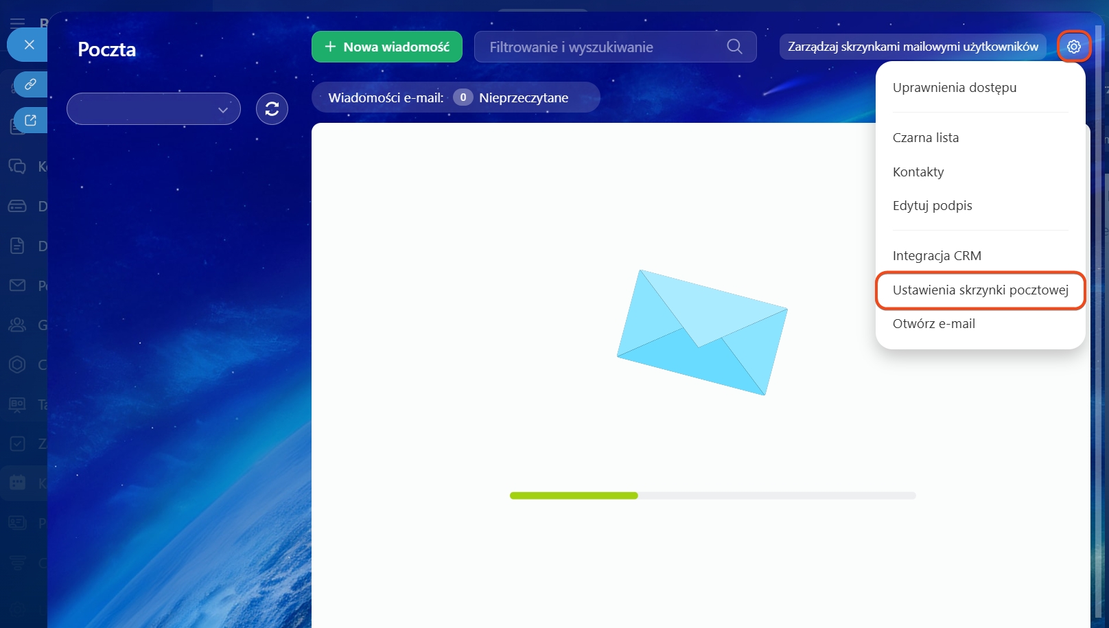 Ustawienia podłączonej skrzynki pocztowej możesz znaleźć w sekcji Ustawienia> Ustawienia skrzynki pocztowej. Tutaj możesz zmienić opcje podłączenia lub odłączyć skrzynkę pocztową.