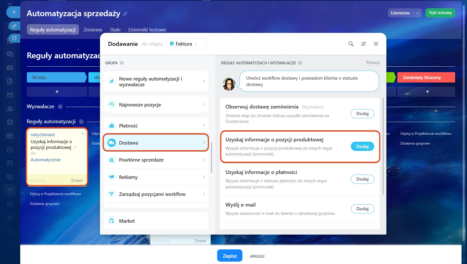 Dodaj regułę automatyzacji Uzyskaj informacje o produkcie.