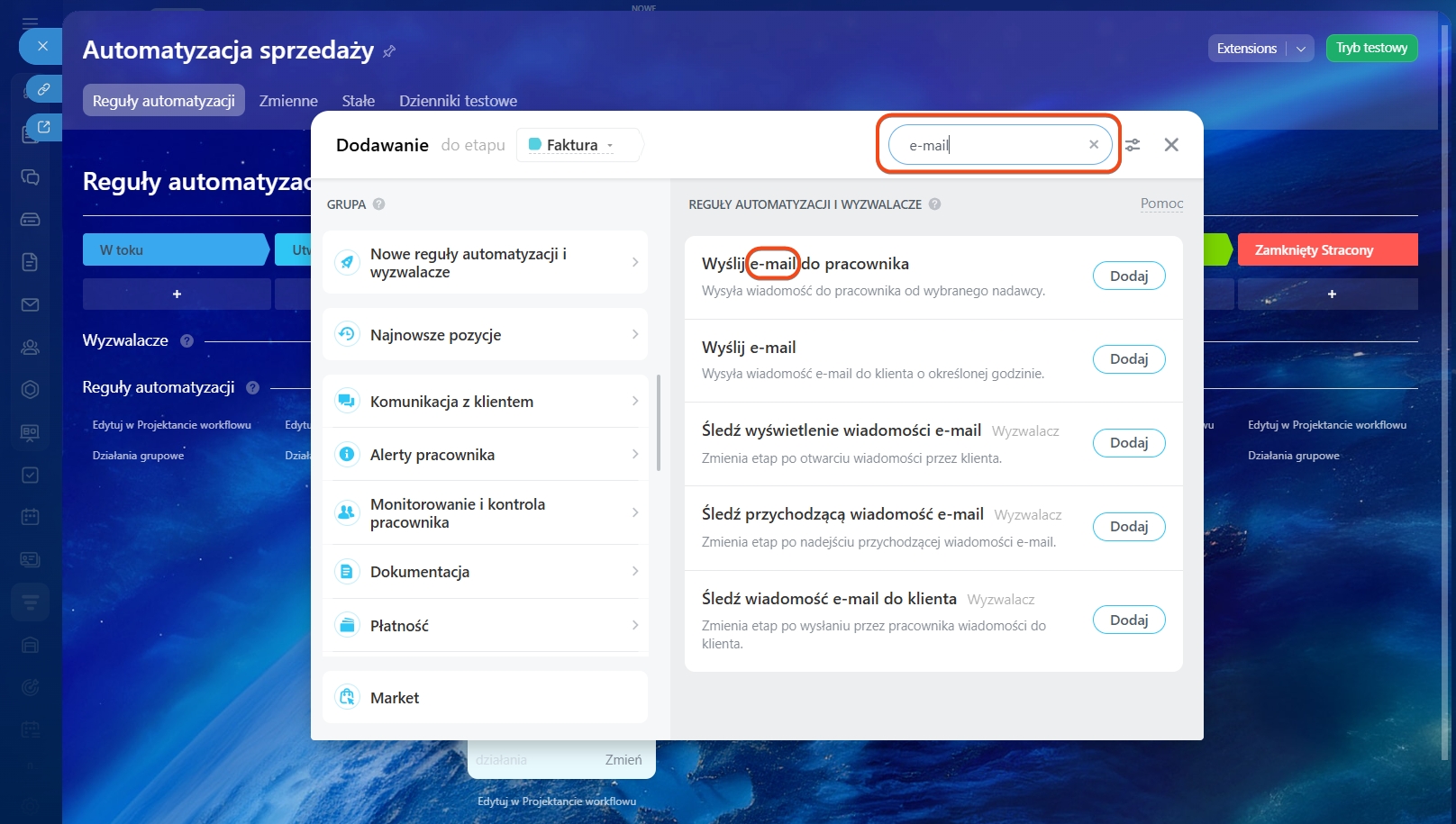 Konfigurowanie reguł automatyzacji