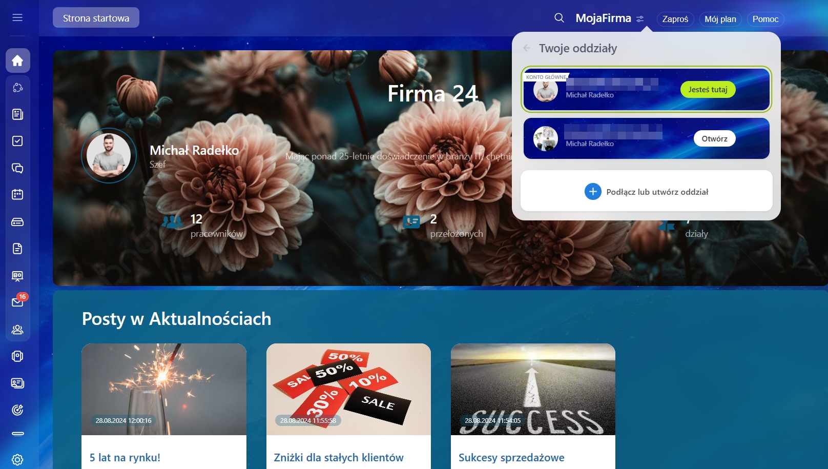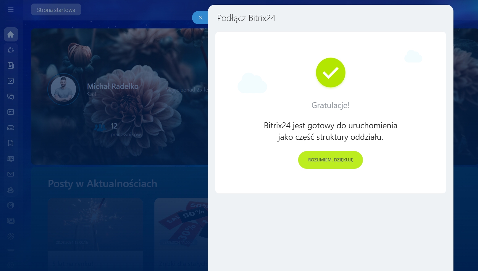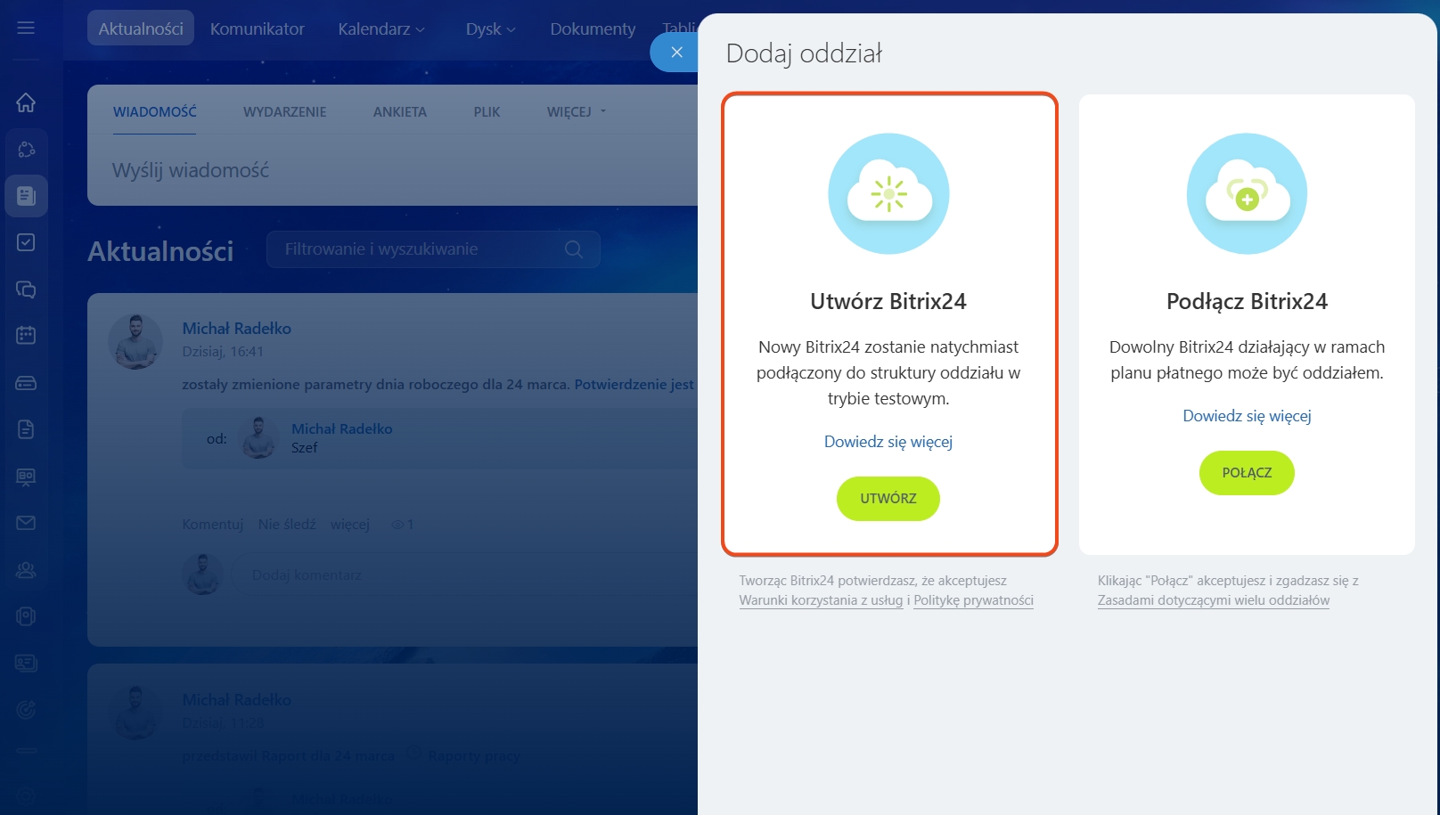 Możesz utworzyć nowy Bitrix24 i natychmiast podłączyć go do sieci oddziałów Twojej firmy.