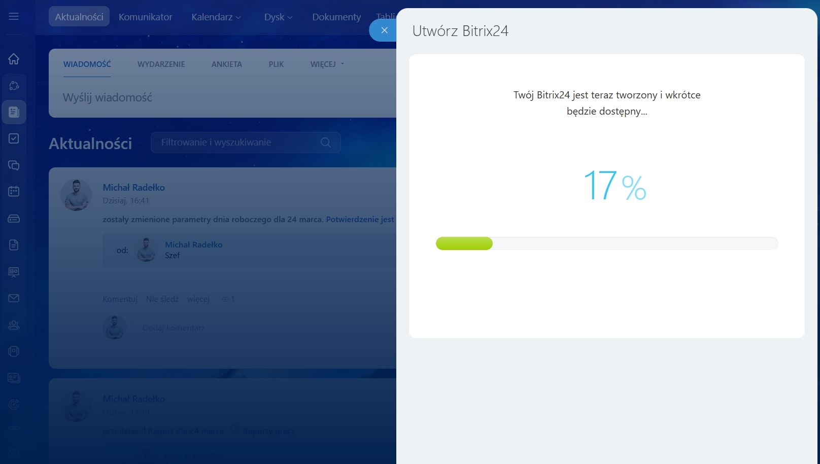 Nowo utworzony Bitrix24 natychmiast połączy się z siecią oddziałów Twojej firmy i przełączy się w tryb demonstracyjny na okres 15 dni. W okresie demonstracyjnym musisz zaktualizować ten oddział do dowolnego planu komercyjnego.