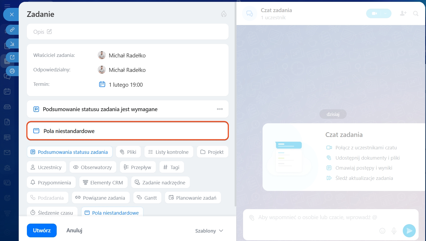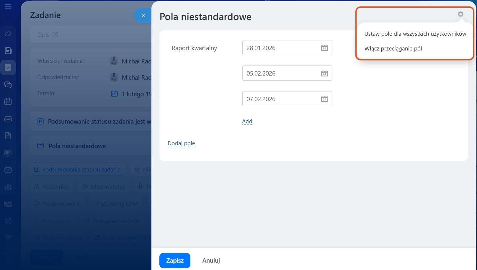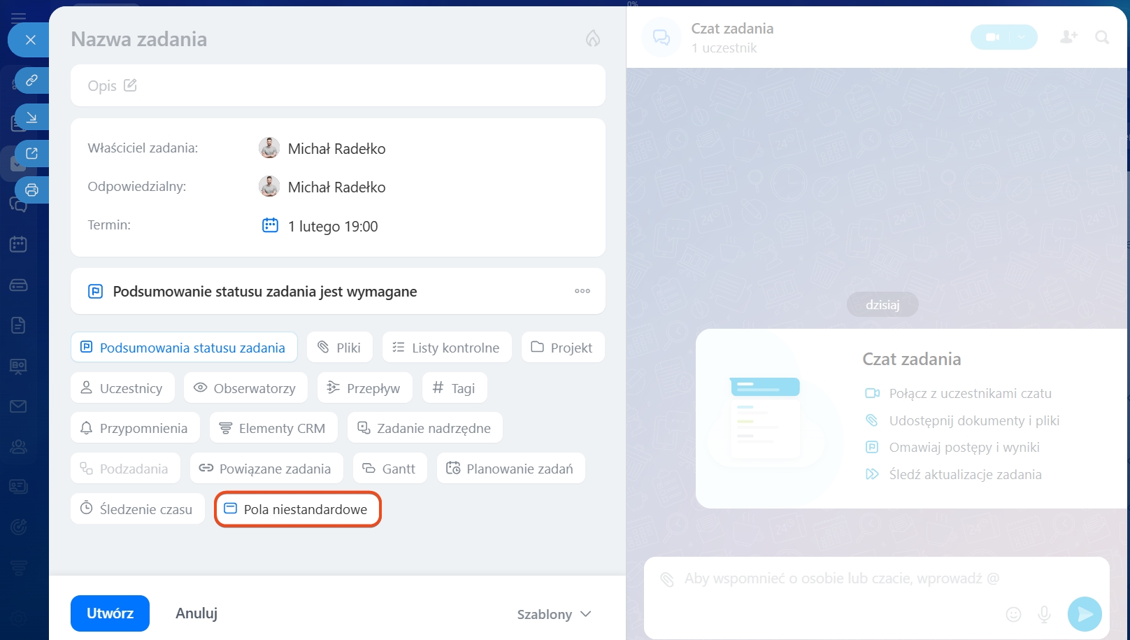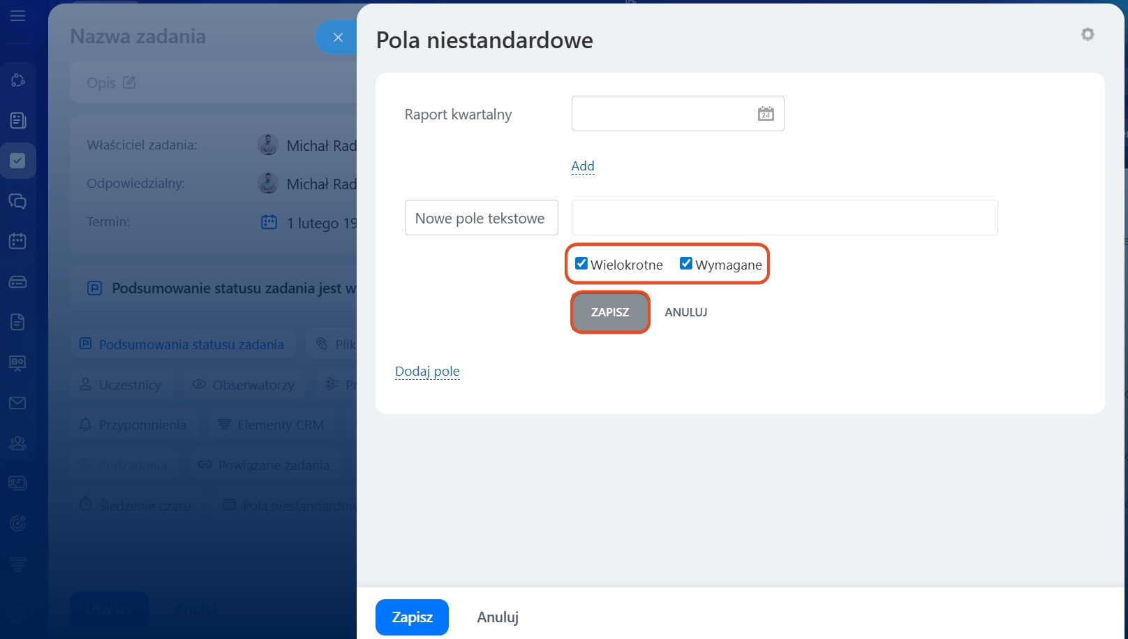 Jak utworzyć pole niestandardowe w zadaniu
