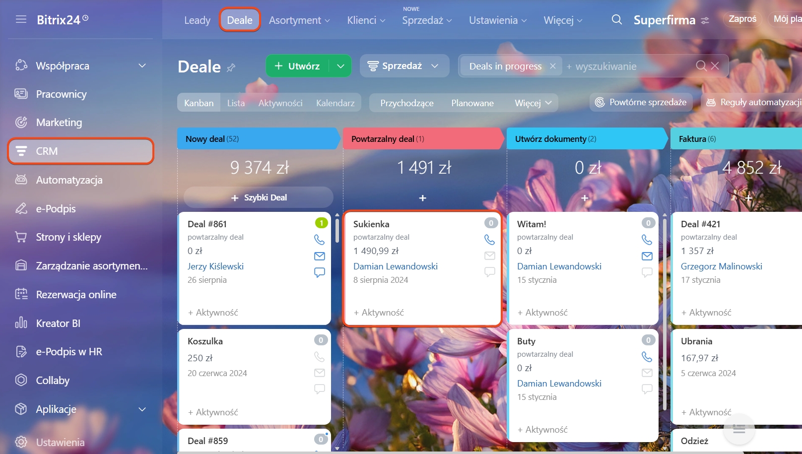 Przejdź do sekcji CRM > Deale i otwórz formularz deala.