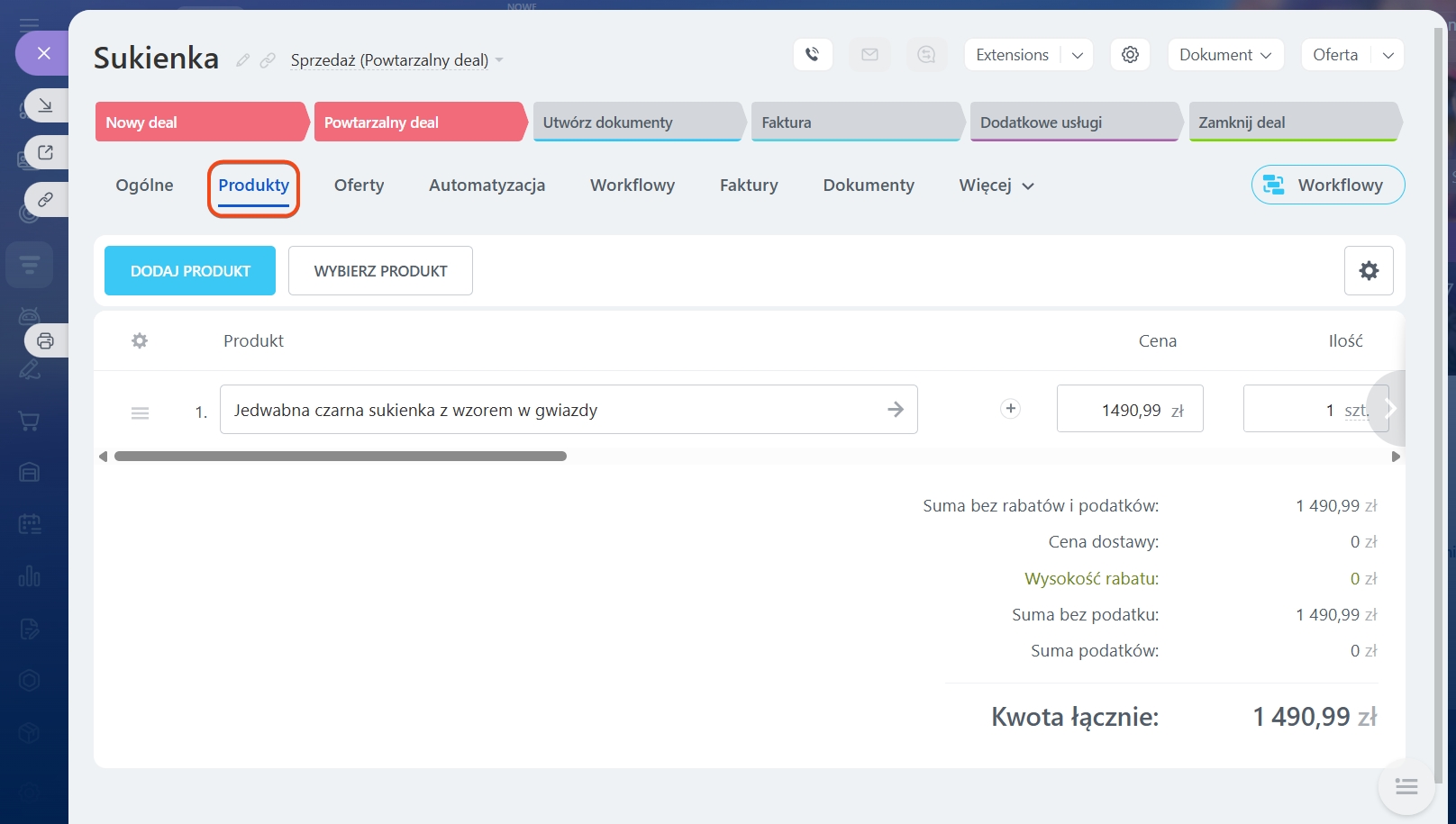 - Deal zostanie przeniesiony do ostatniego etapu, a produkty zostaną sprzedane.