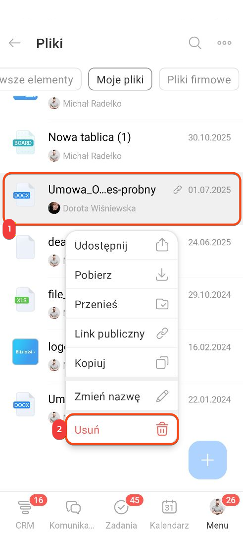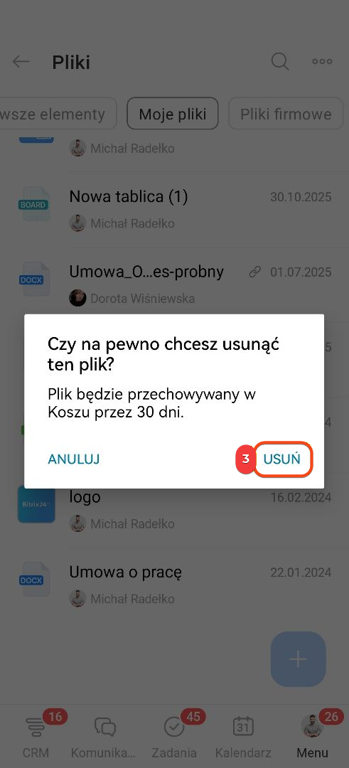 Kosz na dysku w Bitrix24