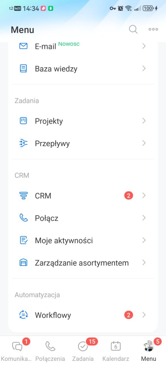 - Aby zobaczyć zaplanowane aktywności lub utworzyć nowe, przejdź do CRM > Więcej > Moje aktywności.