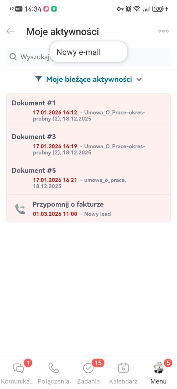 - W Bitrix24 Aktywności w CRM są używane do zadań związanych z klientami: rozmowy telefoniczne, spotkania, zatwierdzanie dokumentów.