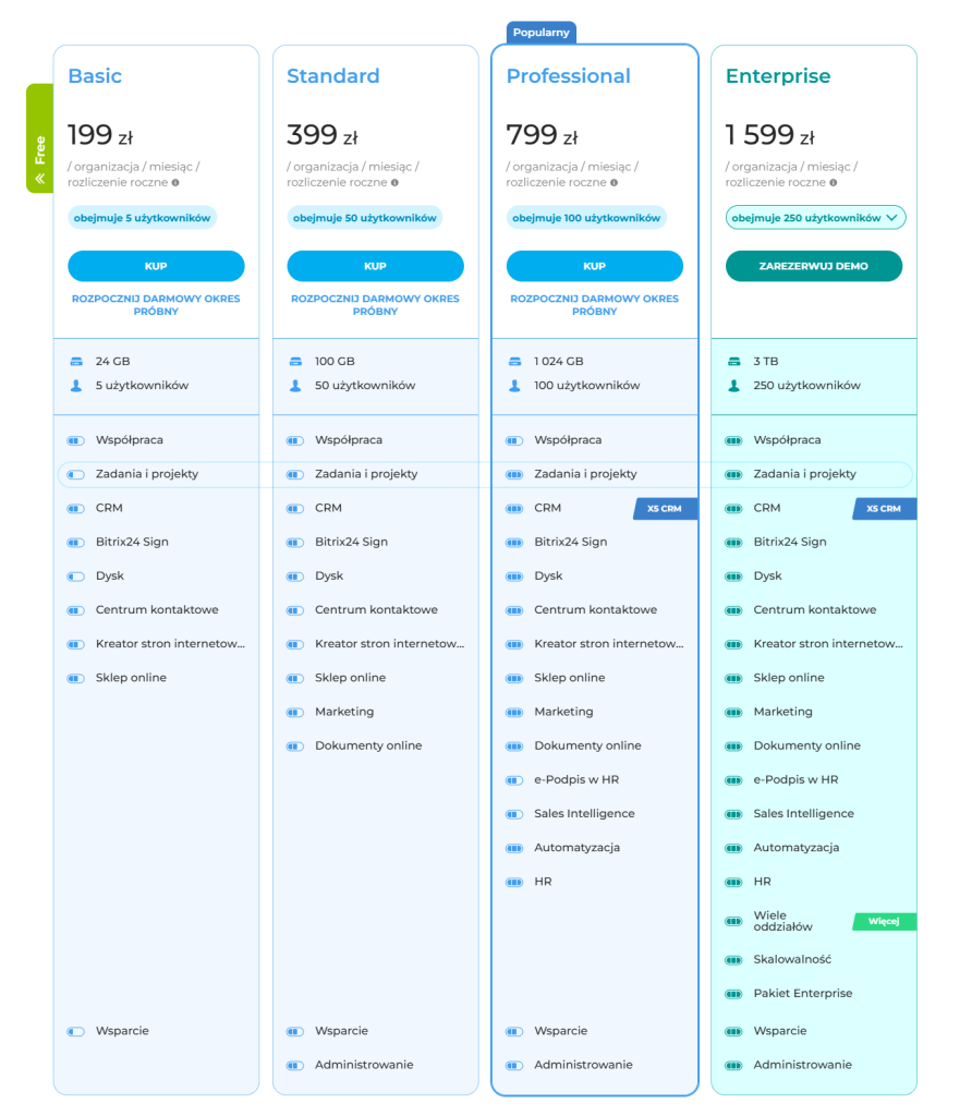 Stale udoskonalamy Bitrix24, dodając nowe funkcje i sprawiając, że zapoznanie się z aktualizacjami jest komfortowe. Tym razem zaktualizowaliśmy plany taryfowe i zoptymalizowaliśmy limity.