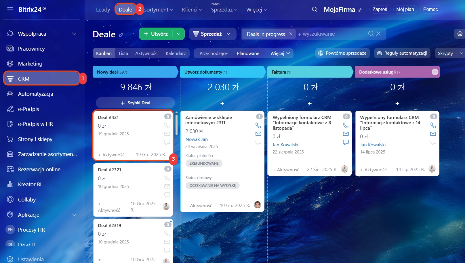 1-3. Przejdź do sekcji CRM > Deale. Otwórz formularz deala.
