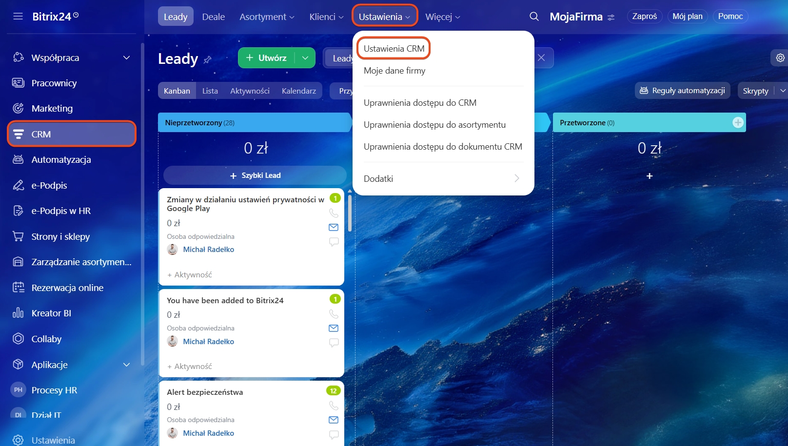 1-4. Przejdź do sekcji CRM > Więcej > Ustawienia > Ustawienia CRM.