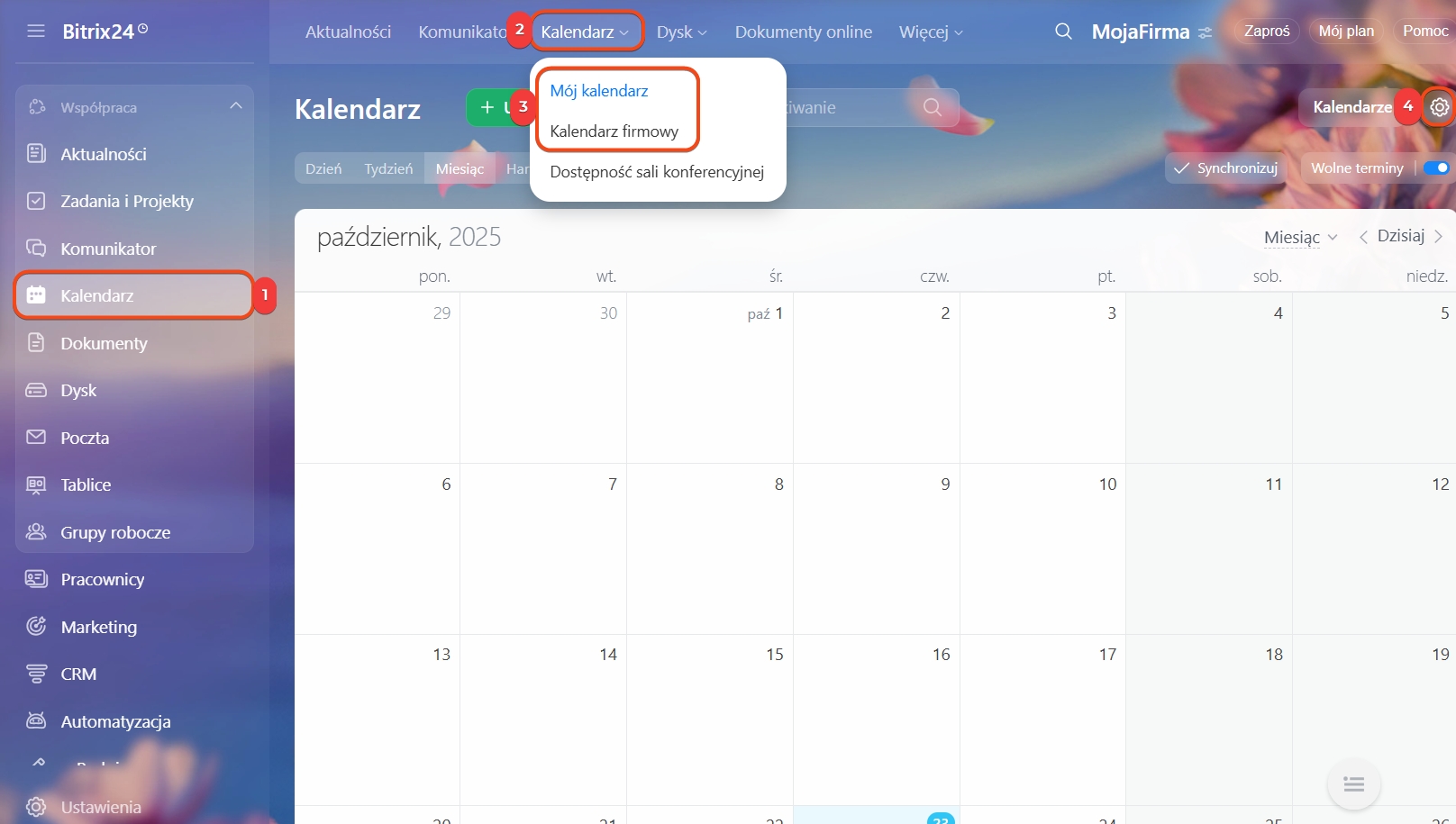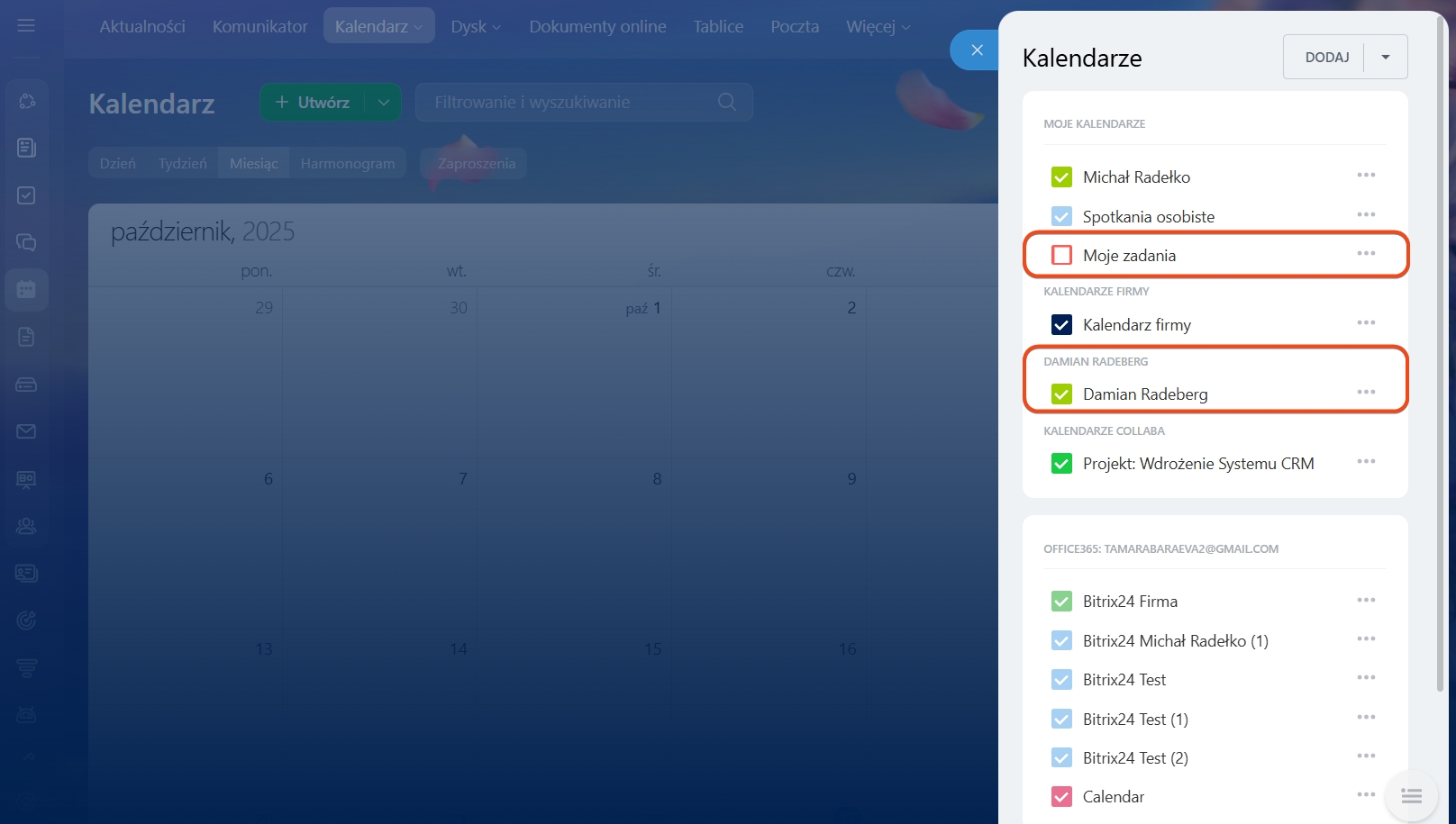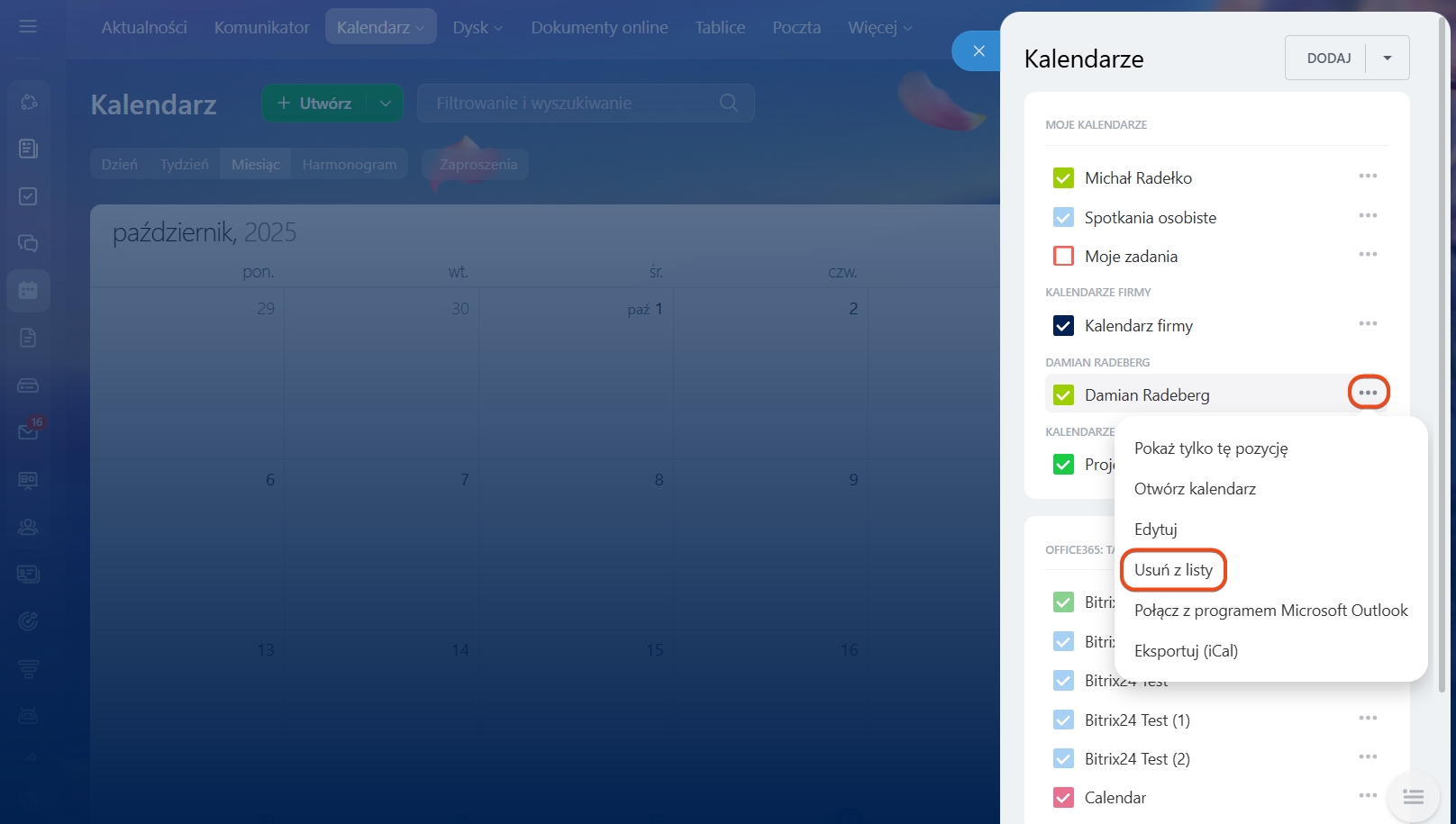 W Bitrix24 dostępnych jest kilka kalendarzy:
