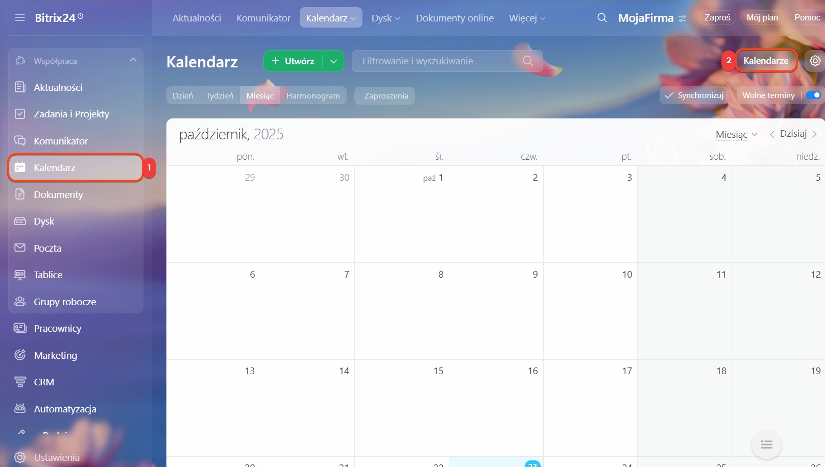 1–2. Przejdź do sekcji Kalendarz > Kalendarz.