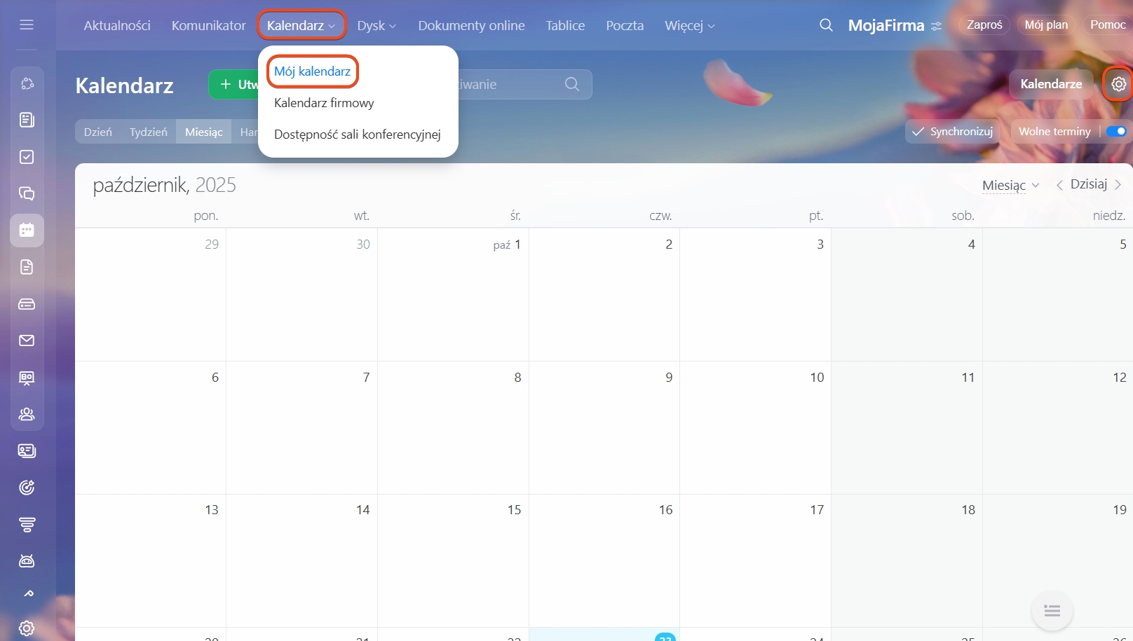 3. Wybierz Mój kalendarz lub Kalendarz firmy.