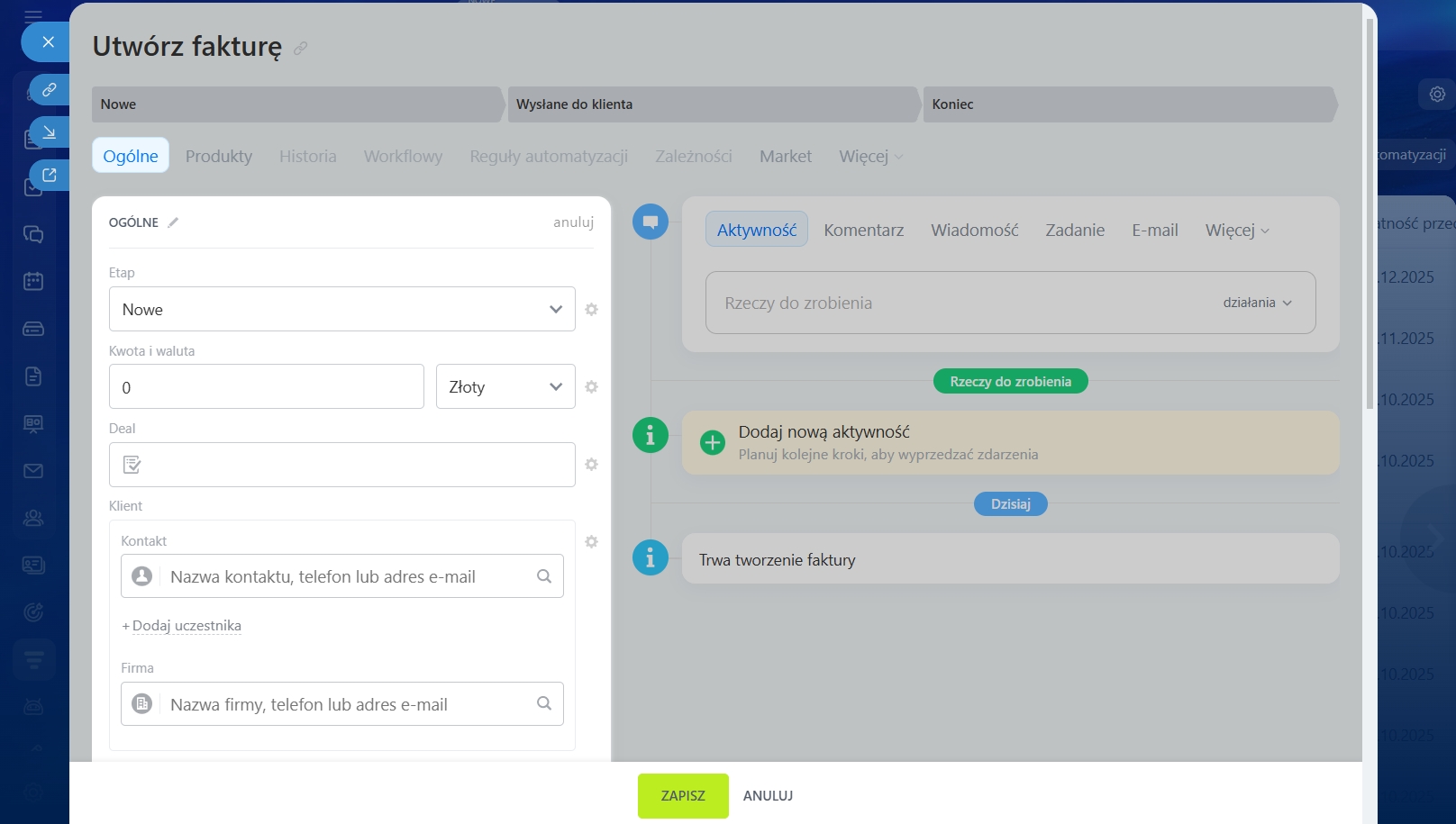 Opracowaliśmy nowe szablony faktur oparte na inteligentnych procesach. Pojawiły się w nich: automatyzacja, wsparcie dla systemów płatności z internetowego sklepu, wspólny katalog produktów, znany formularz elementu CRM.