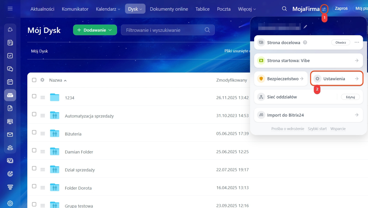 - Kliknij ikonę obok nazwy Twojego Bitrix24.