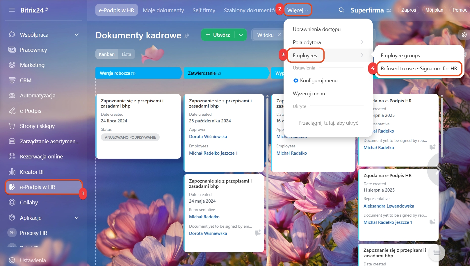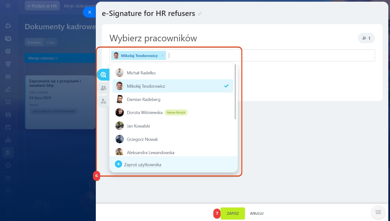 - Bitrix24 automatycznie wyklucza pracowników preferujących ręczne podpisywanie.