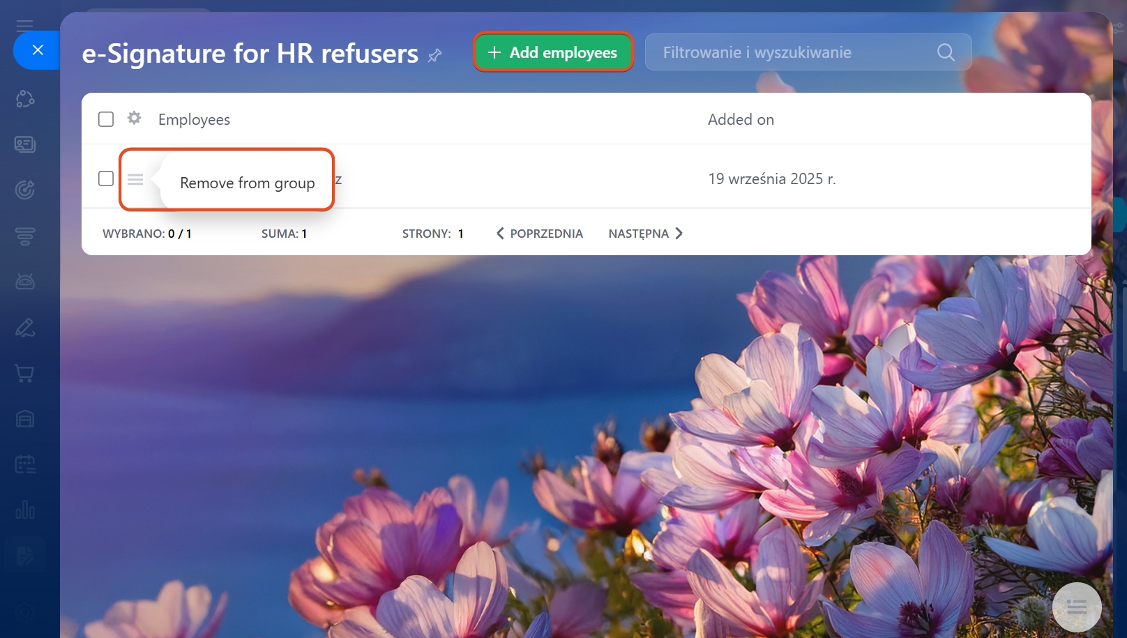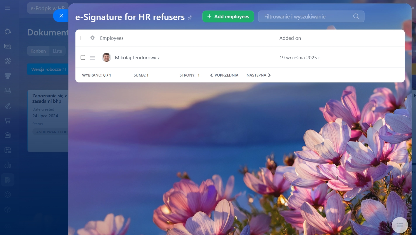 Pracownicy z tej listy będą automatycznie wykluczani z masowych wysyłek dokumentów do podpisu elektronicznego.