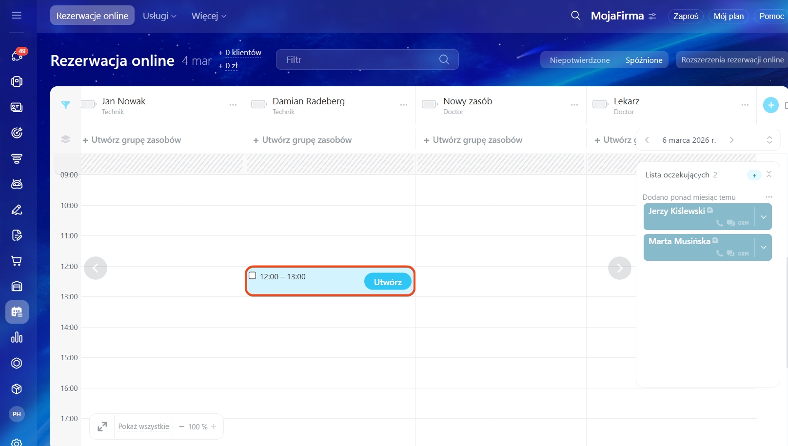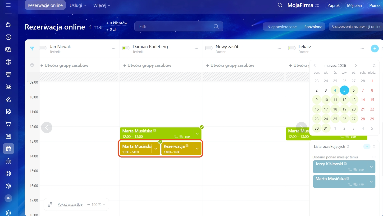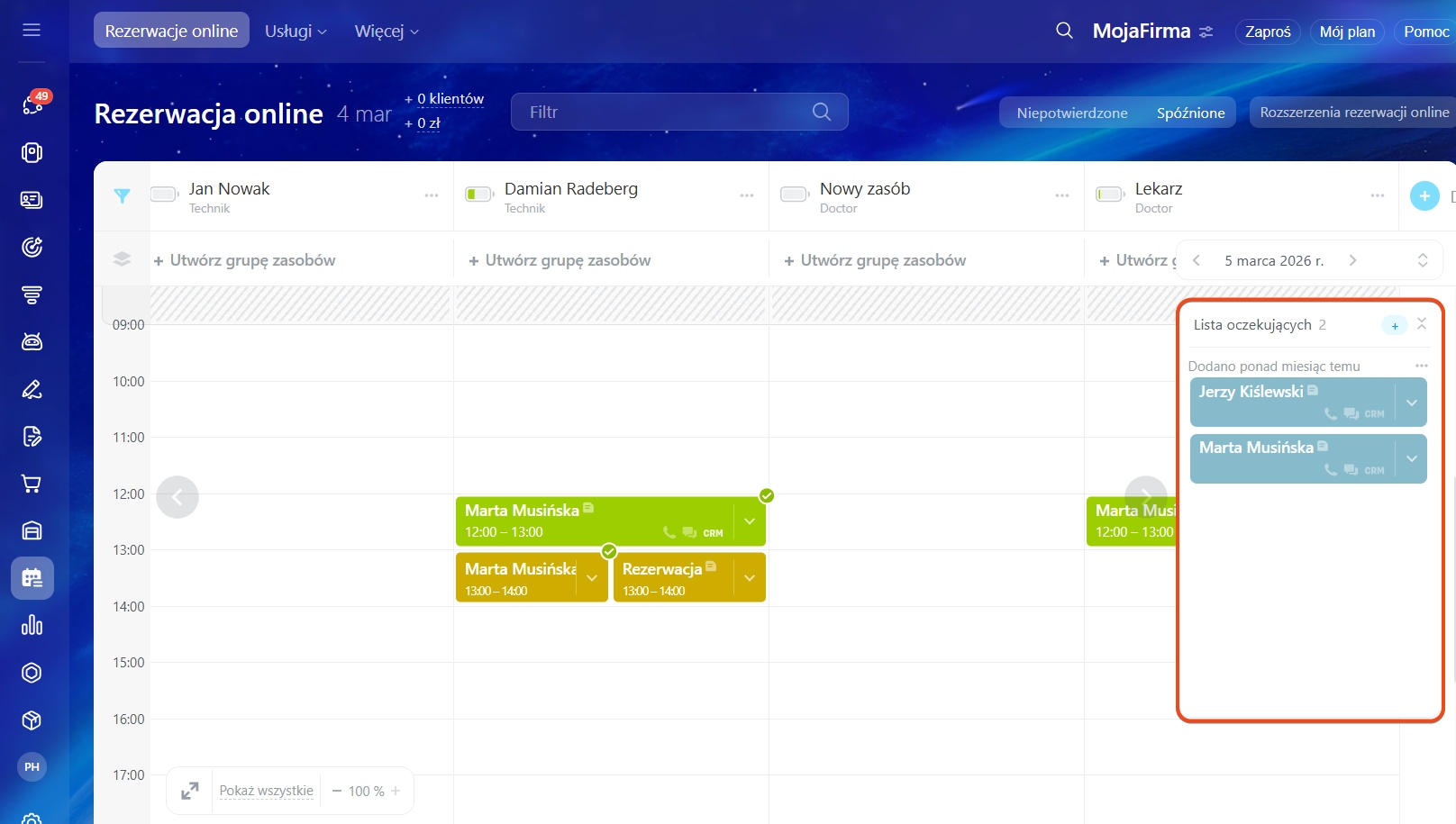 Rezerwacja online: lista oczekujących