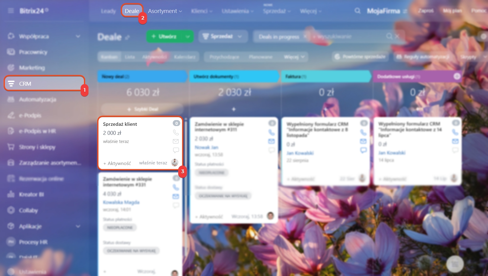 Zarejestruj klienta na usługę z formularza elementu CRM