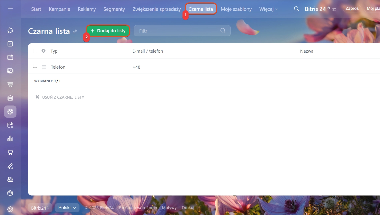 W sekcji Marketing otwórz zakładkę Czarna lista i kliknij Dodaj do listy.