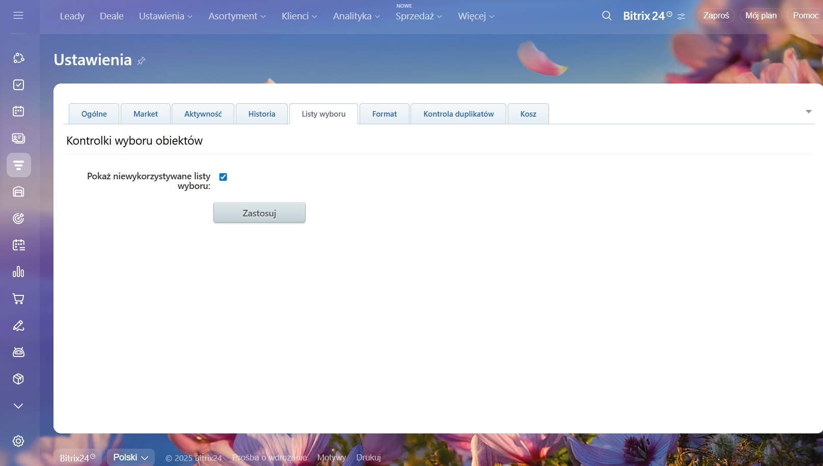 Pokaż przestarzałe listy wyboru: Wyświetla przestarzałe listy wyboru. Zalecamy korzystanie z Katalogu produktów.
