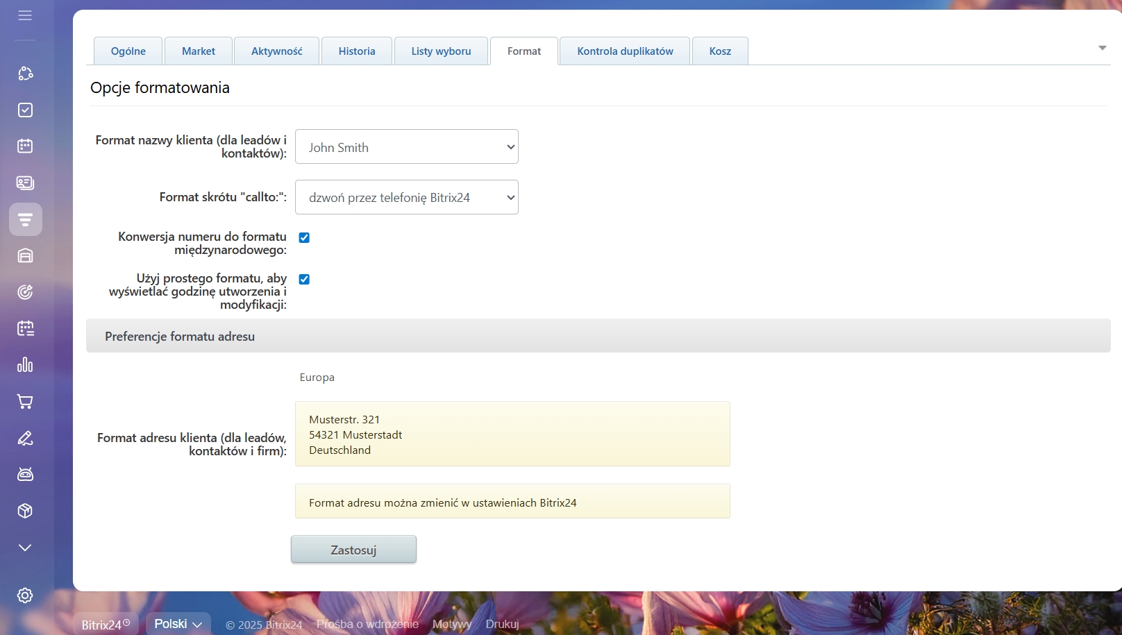 Możesz zmienić format adresu klienta w ustawieniach Bitrix24.