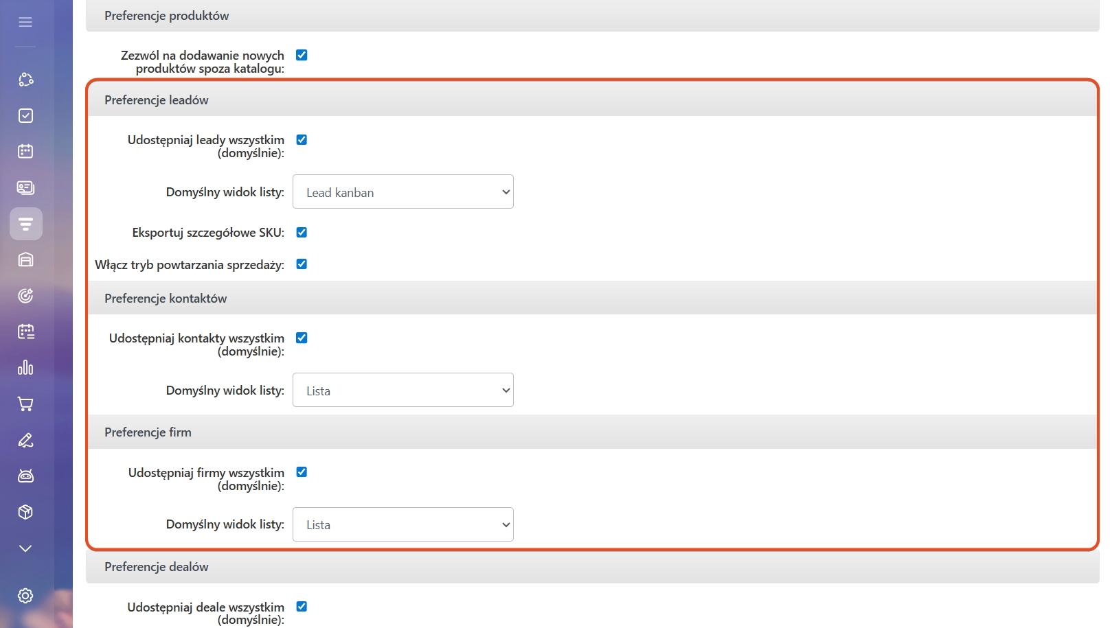 Eksportuj szczegółowe SKU: Włącz tę opcję, aby uwzględnić szczegóły produktów podczas eksportu leadów i deali.