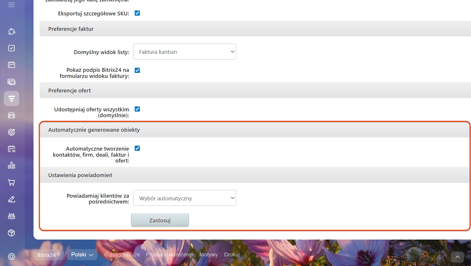 Automatyczne tworzenie kontaktów, firm, deali, faktur i ofert: Pozwala na automatyczne tworzenie elementów CRM podczas konwersji, jeśli wszystkie wymagane pola są wypełnione.