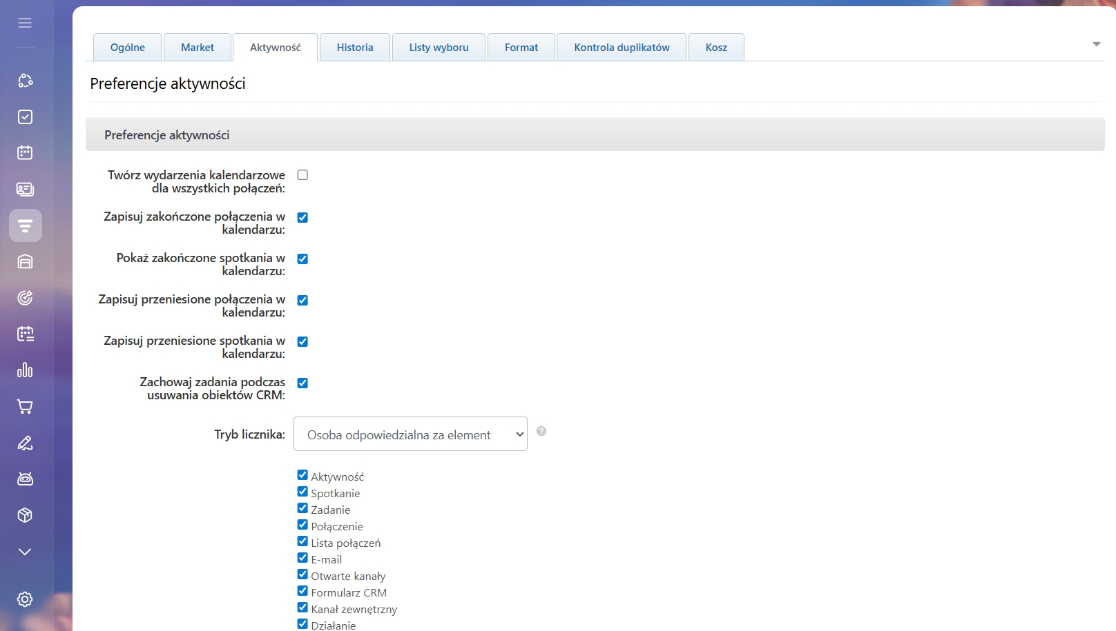 Automatycznie zamknij aktywności podczas konwersji leadów: Wybierz aktywności, które Bitrix24 ma automatycznie zamknąć po konwersji leadu.