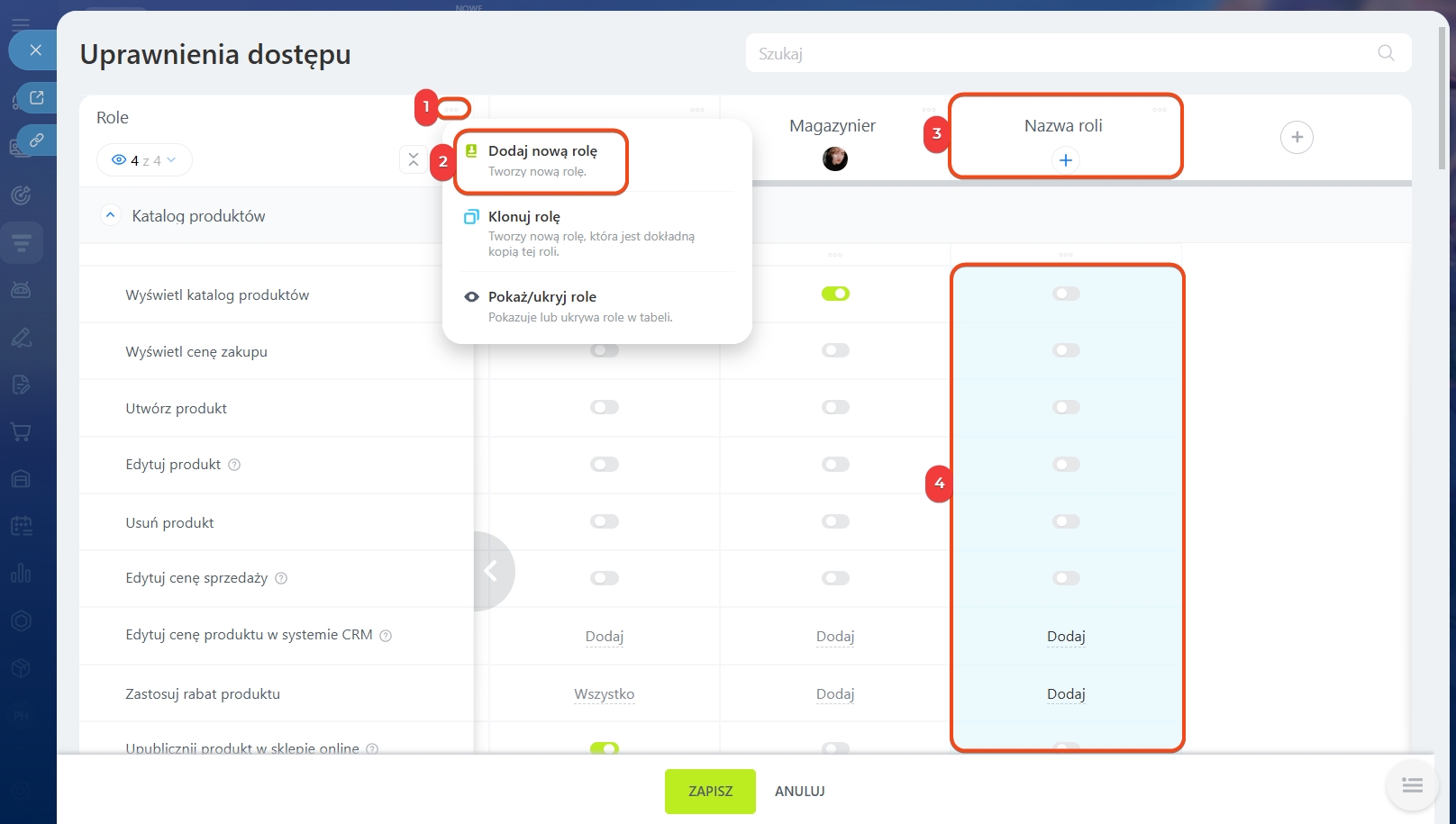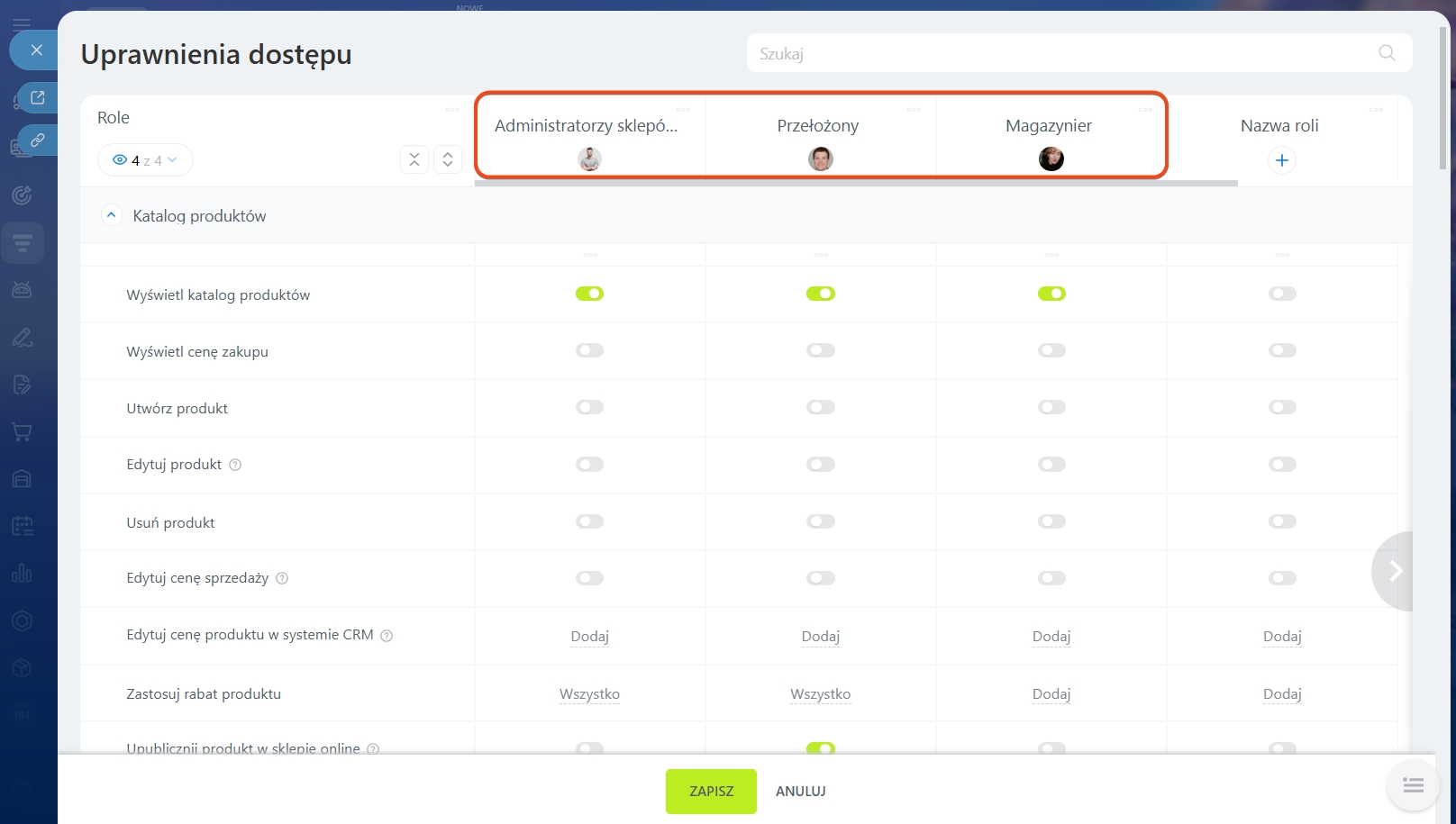 Konfiguracja ról i uprawnień dostępu