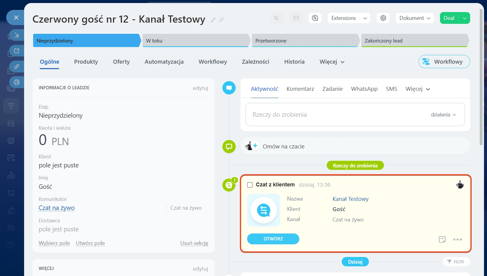 - Użytkownik: Profil gościa bez dostępu do Bitrix24, utworzony automatycznie w celu powiązania czatów z CRM.