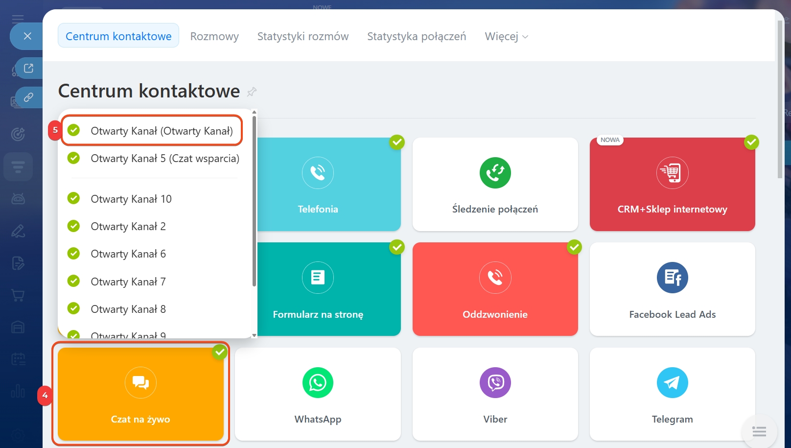 Uzyskaj dostęp do ustawień otwartych kanałów