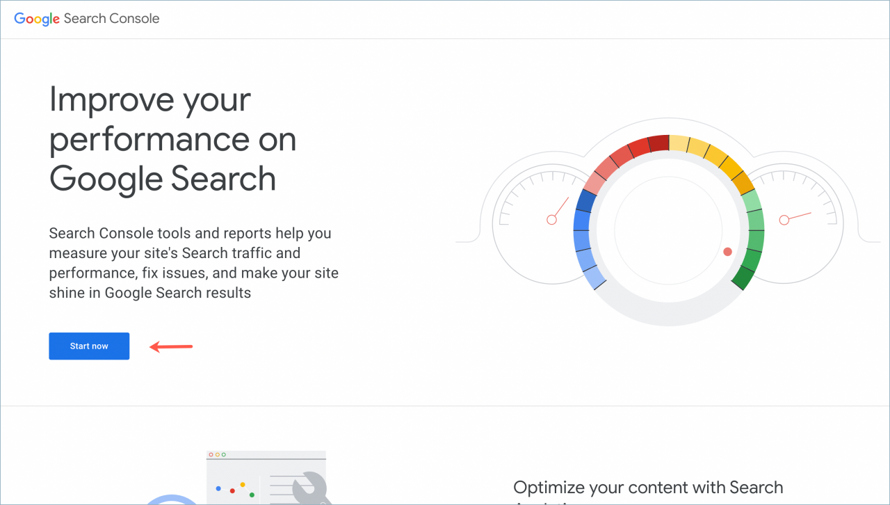 Przejdź do Google Search Console i kliknij Rozpocznij teraz.