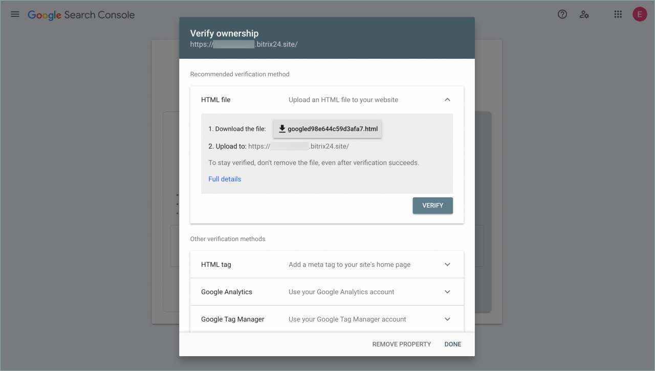 Teraz musisz potwierdzić, że jesteś właścicielem tej strony.