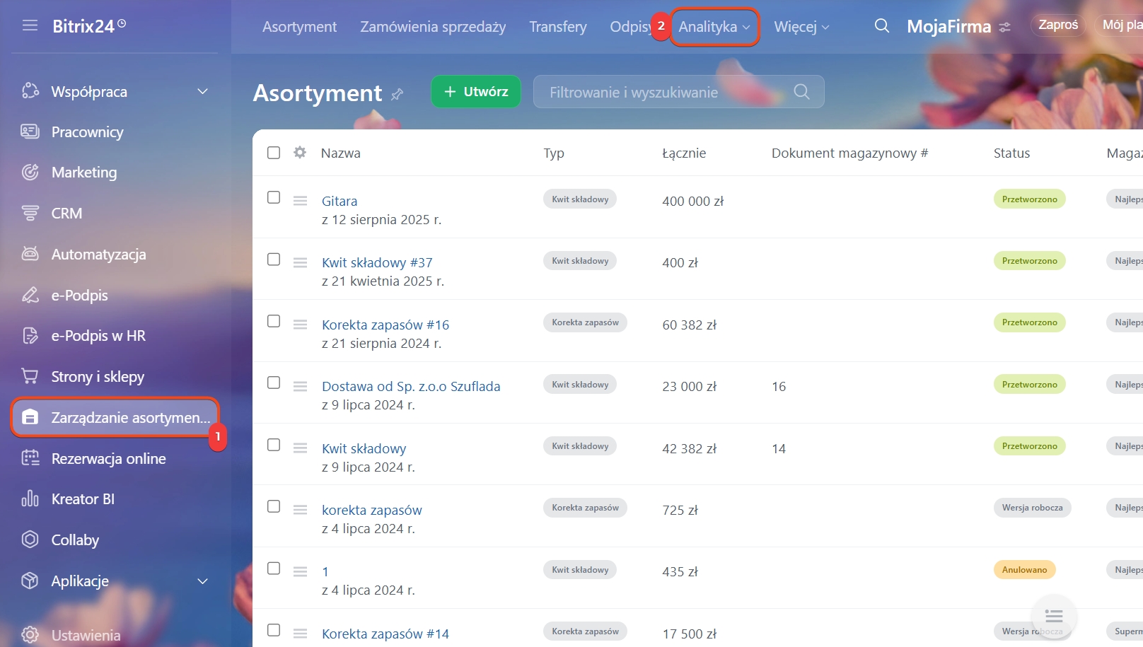 Aby zobaczyć raport, przejdź do sekcji Zarządzanie asortymentem > Analityka > Raport o asortymencie.